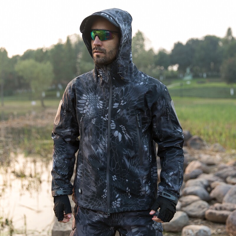 Outdoor Shark Fish Leather Soft Shell Submachine Clothing Male Windproof Waterproof Military Fan Tactical Jacket Color Winter Plus Suede Thick Mountaineering Suit