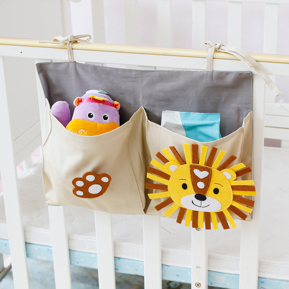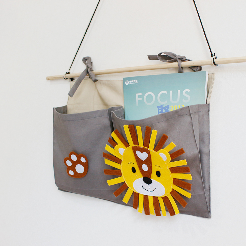 Cartoon little lion crib hanging bag children's room wall hanging bag cot storage hanging bag kindergarten space-saving