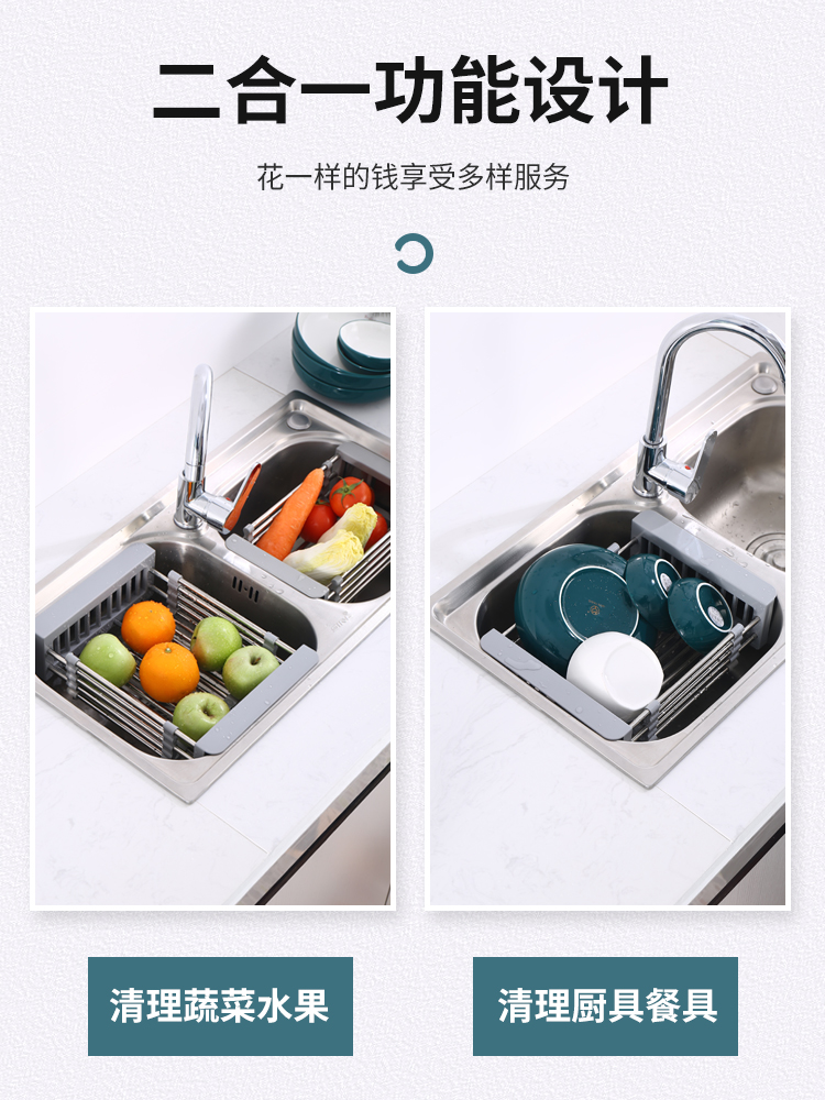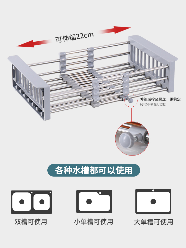 Kitchen sink asphalt basket stainless steel scalable tap shelf dishwash basket asphalt frame