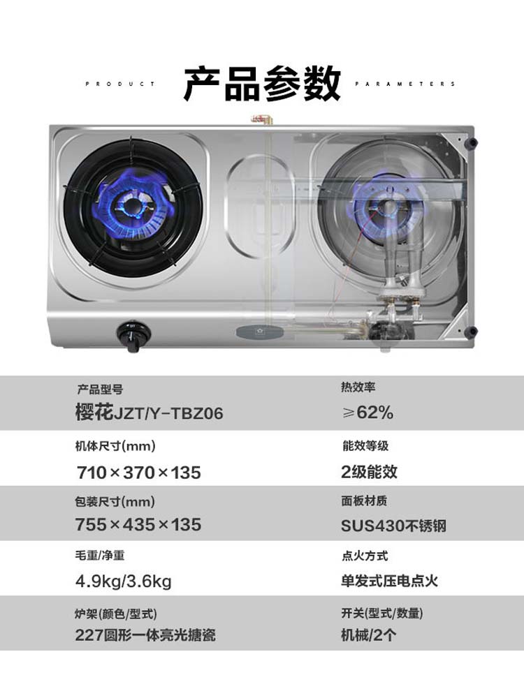Cherry blossom TBZ06 stainless steel table stove Double mouth gas stove Large firepower gas stove Liquefied Gas fire cooker