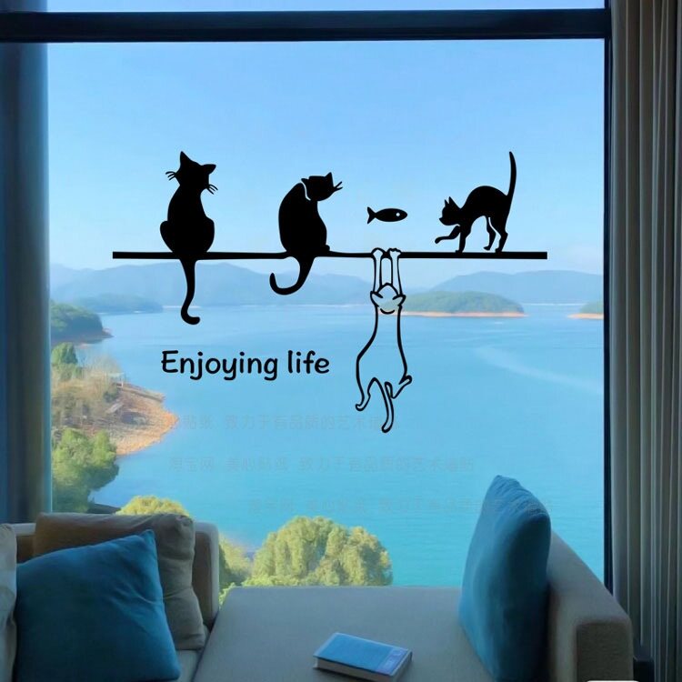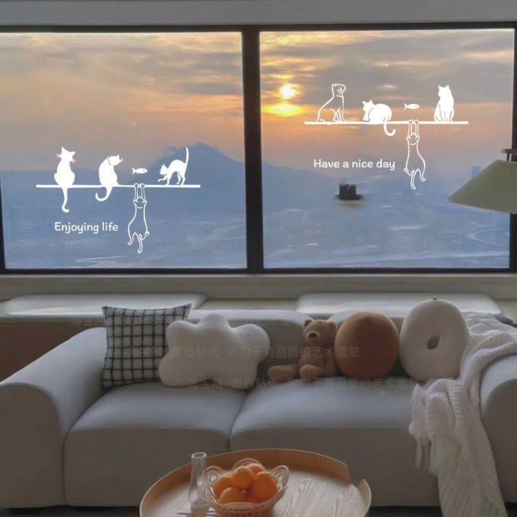 Yangtai glass door anti-collision sticker kitchen sliding door sticker ins window decoration window flower kitten cute wall sticker