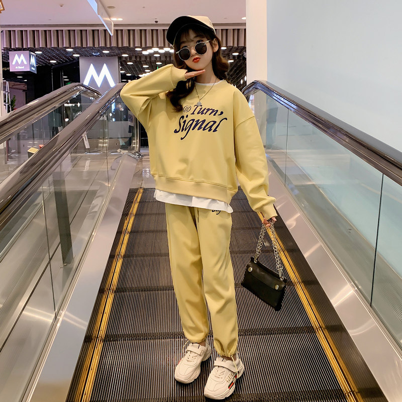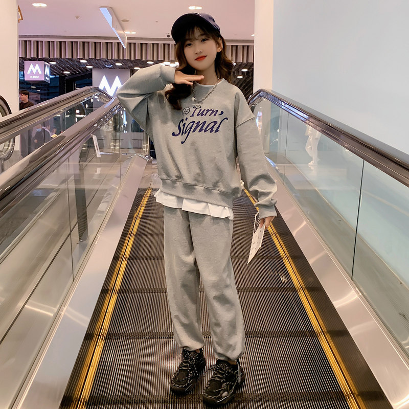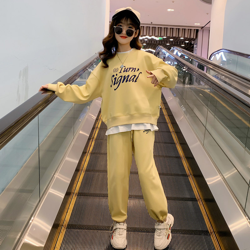 Girls Spring 2022 New Love Letter Print Fake Two-piece Foreign Style Fashionable Little Cute Net Red Sweatshirt Set
