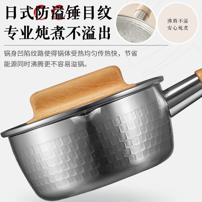 Supoir snowpan Japanese style stainless steel pan baby small milk pan baby covegan cooking pan Home cooking pasta pan