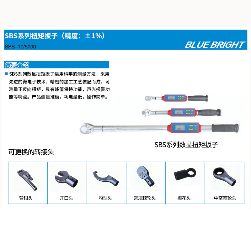 Blue light electronic mechanics digital display torsion wrench flip-floe to torque wrench audible and visual alarm SBS Exchangeable conversion head