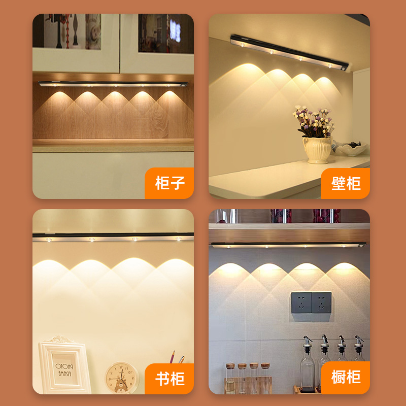 led rechargeable human body induction lamp with wireless self-adhesive porch wine cabinet wardrobe free wiring corrugated cat's eye hill lamp