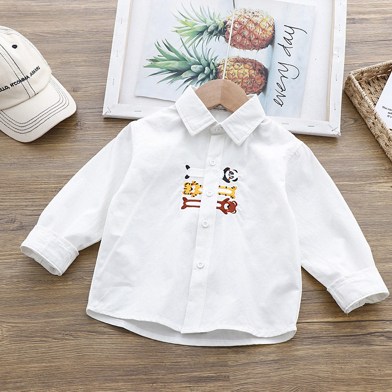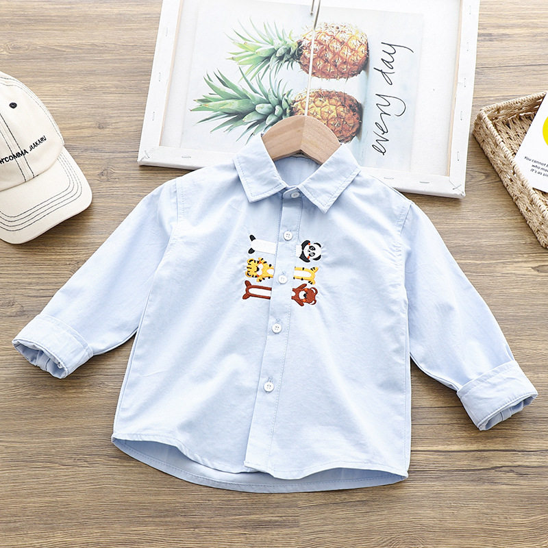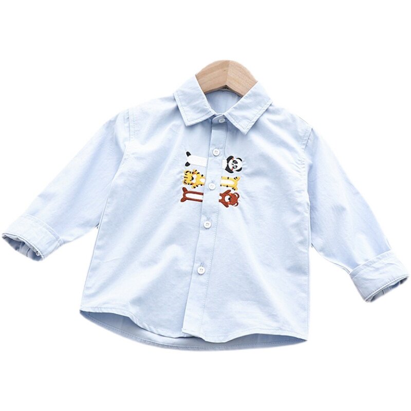 Boy Shirt Spring Autumn Season New Middle Children Cartoon Embroidery Children Long Sleeve Shirt Baby Pure Cotton Blouse Tide 5