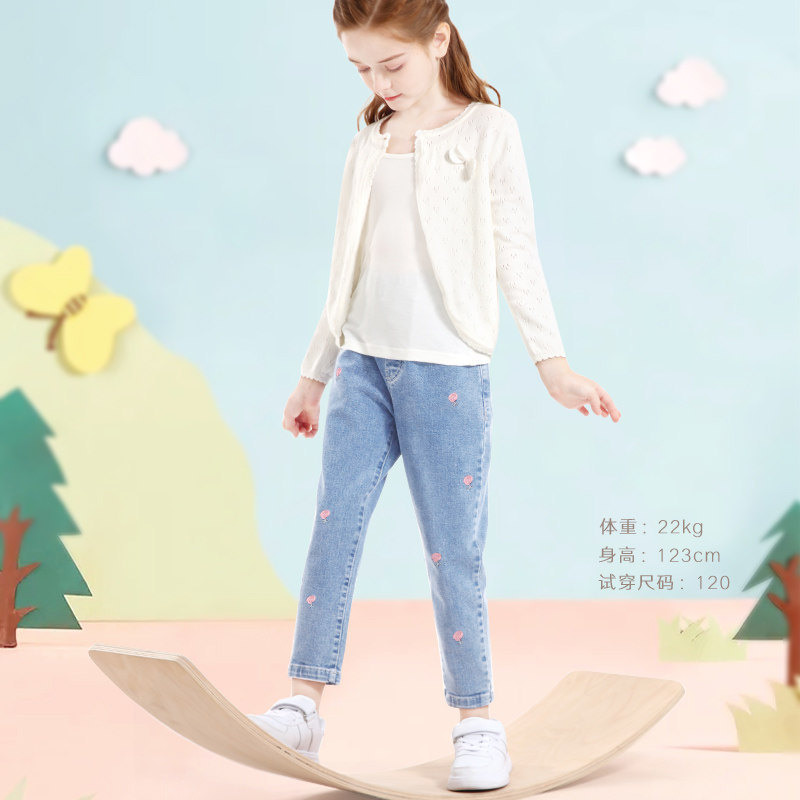 Girl Jeans Children Pants 2022 Spring Autumn New Elastic Loose Outside Wearing CUHK Youngist Pants Old Daddy Pants