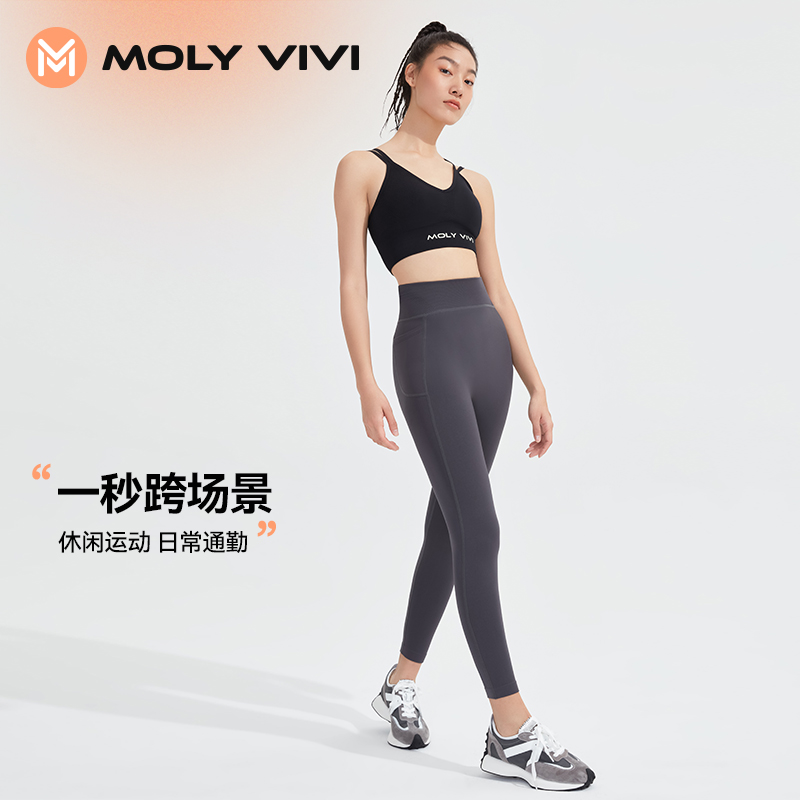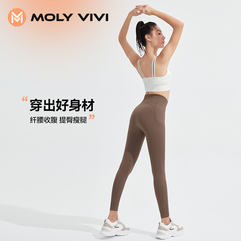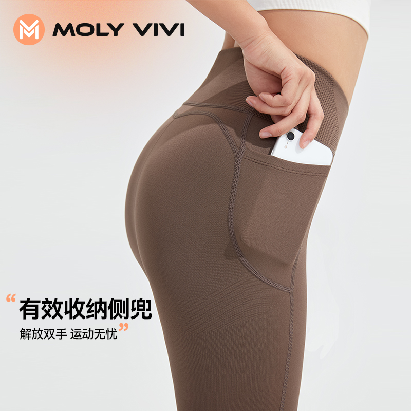 MOLYVIVI yoga pants women's pocket with small pocket wind beating bottom gym pants outside wearing high waist-to-hip skinny legs Barbie pants
