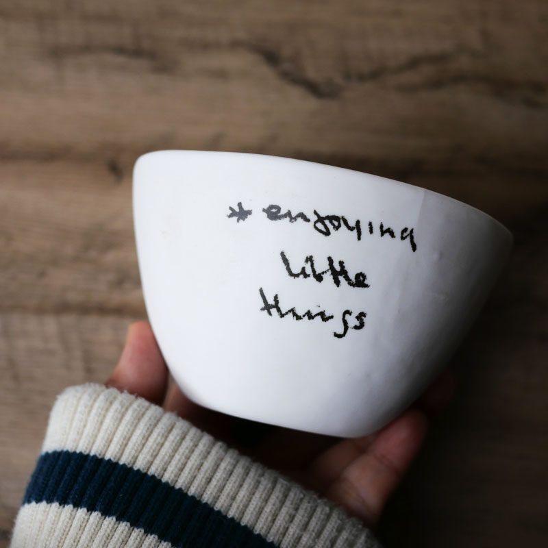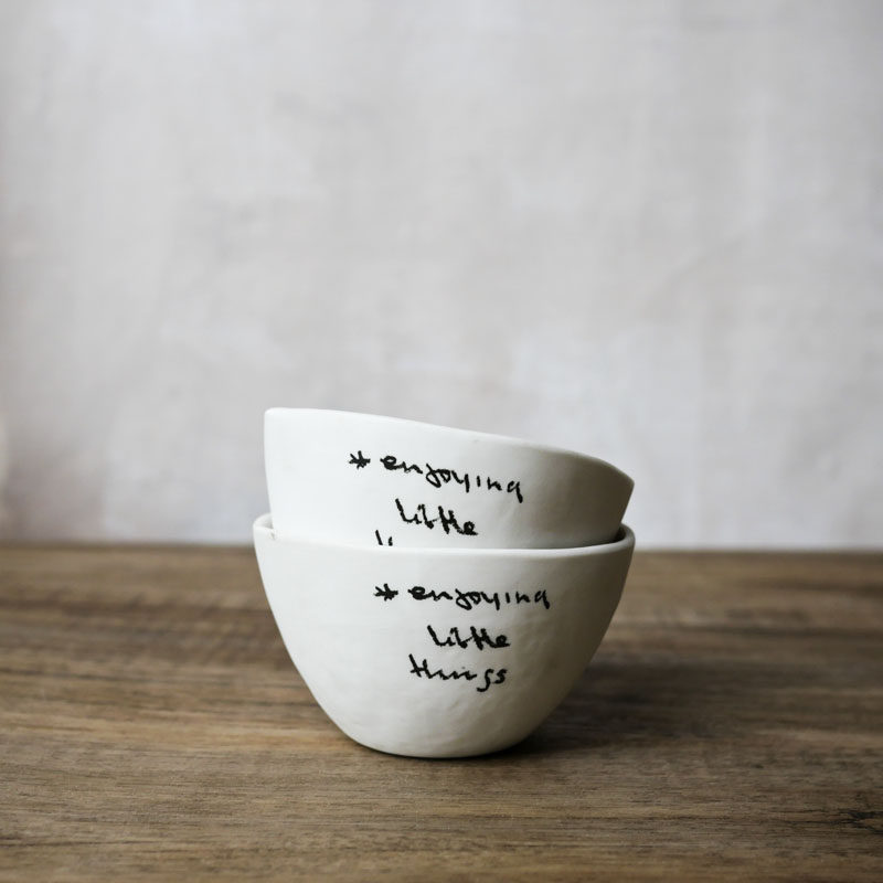 W1962 Nordic ins Wind Crayon Handwritten English Coarse White Wind Hand Pinch Irregular Personality Small Bowl Design Sense
