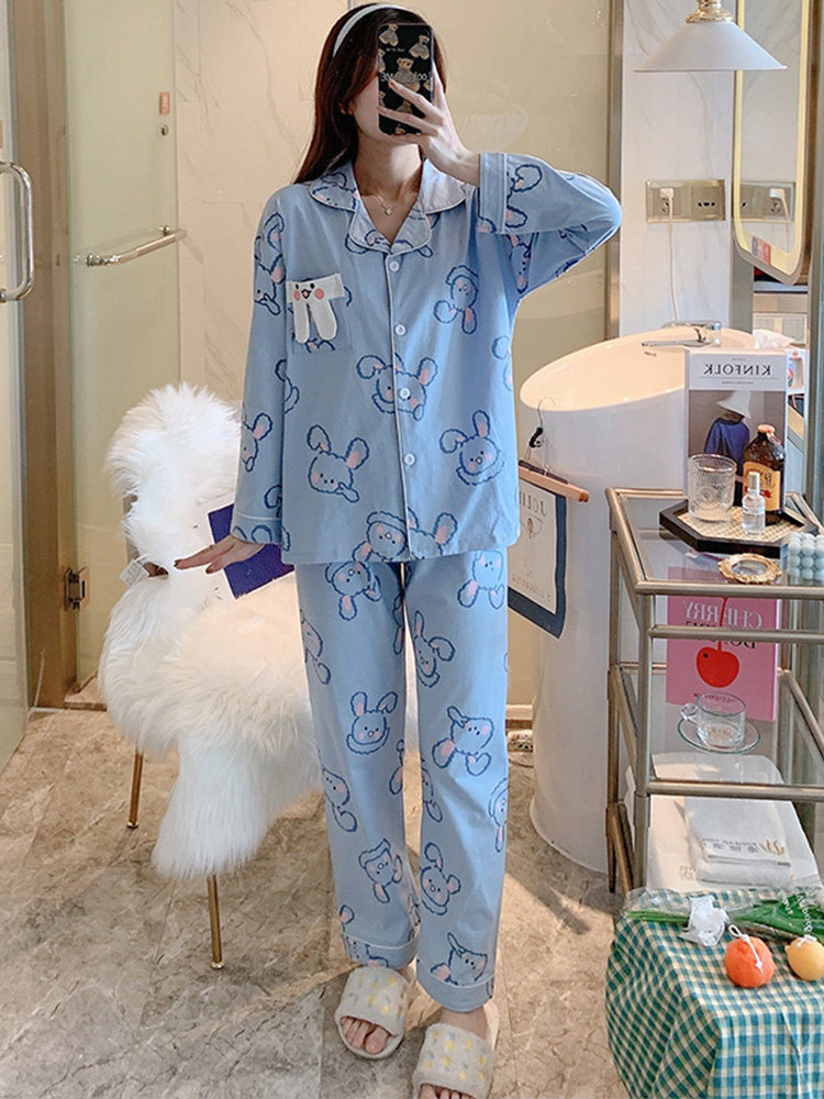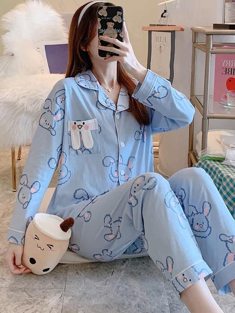 Japanese GP pajamas women's 2022 spring and autumn new cotton long-sleeved cute rabbit cardigan home service