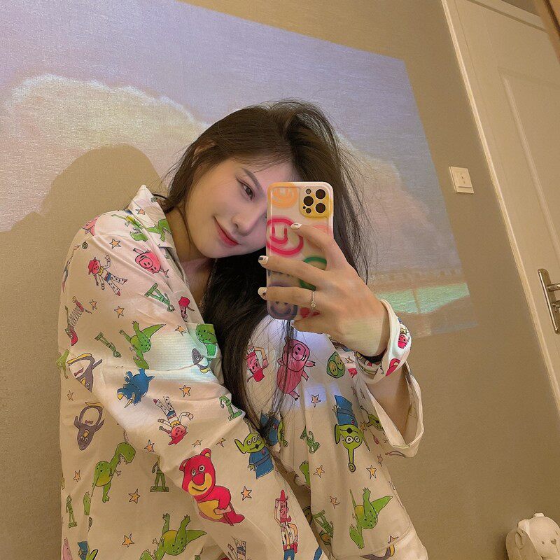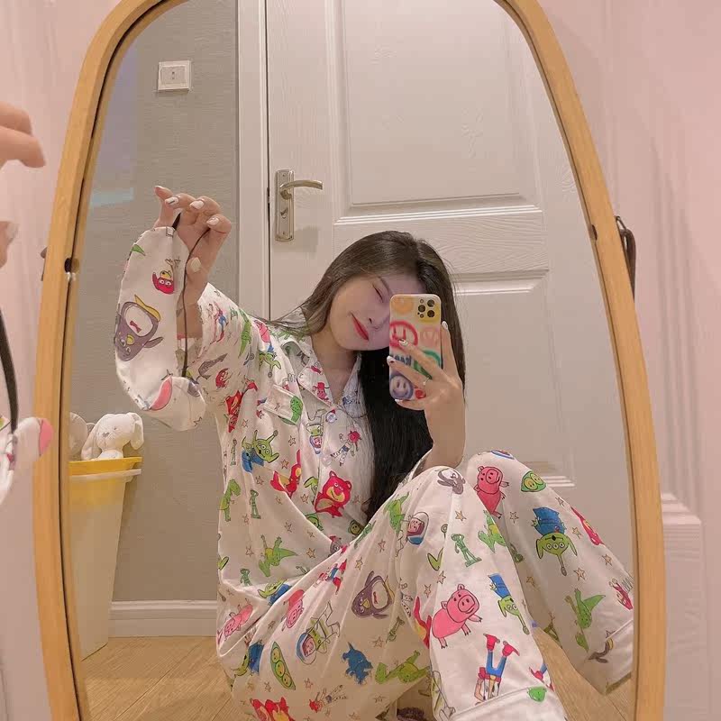 Japan GP spring and autumn new ins style graffiti cartoon pajamas women's cotton net red cute long-sleeved home clothes