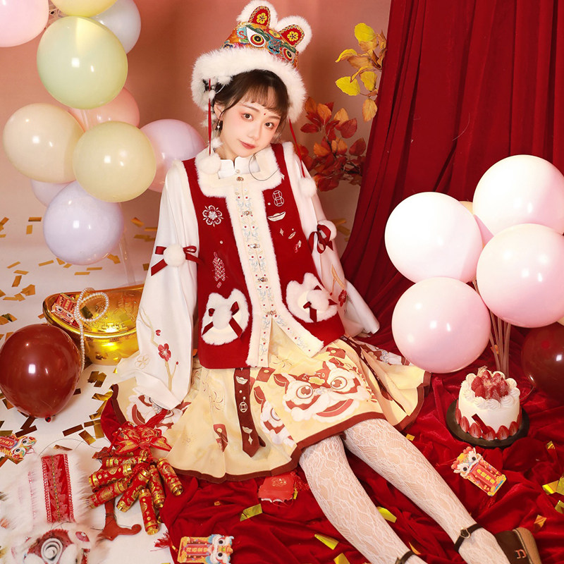Lion Lion Ruyi original Winter Ming-made Han suit Women Garsuede Bichia Lunar New Year Horse Noodle Dress with New Year's Eve suit