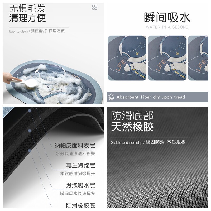 Quick-drying, absorbent non-slip bathroom doorway floor mat
