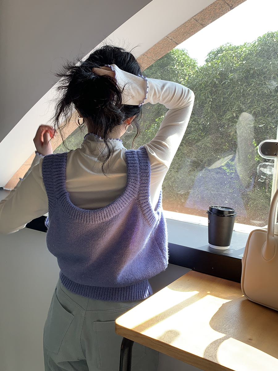 Xin help homemade 2023 Autumn Winter Exterior Lap Vest Stack Wearing Bottomless Kampung Shoulder Pink Knit Waistcoat Women-Taobao