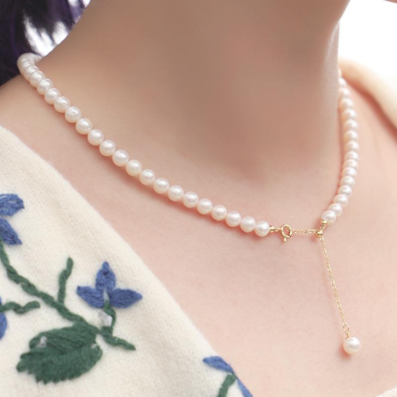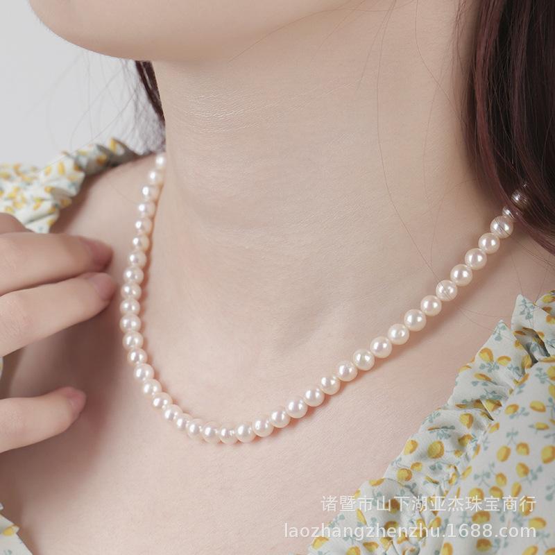 Pearl necklace female collarbal freshwater design circular flaw 6 7mm s925 silver