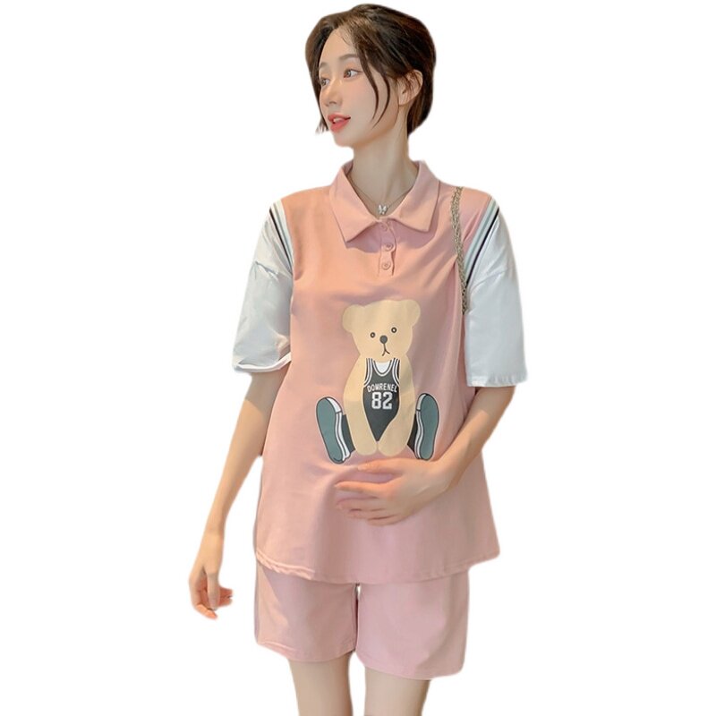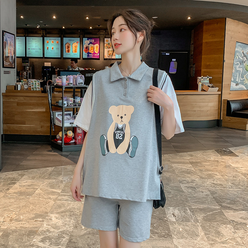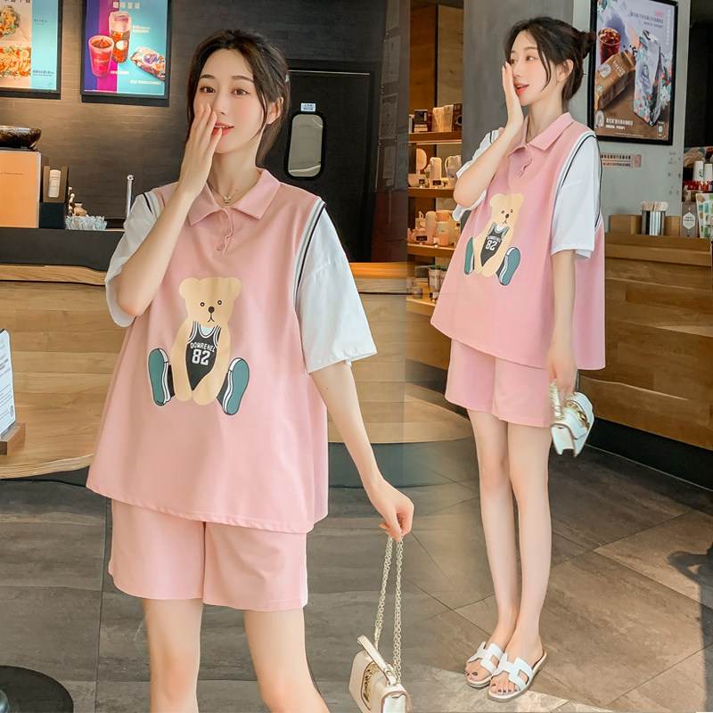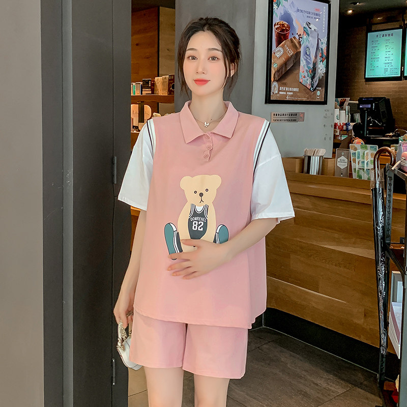 Pregnancy Woman Loaded With Two Styles Suit Summer Dress New Korean Version Short Sleeve T-shirt Blouse shorts Pregnant Clothing Tide