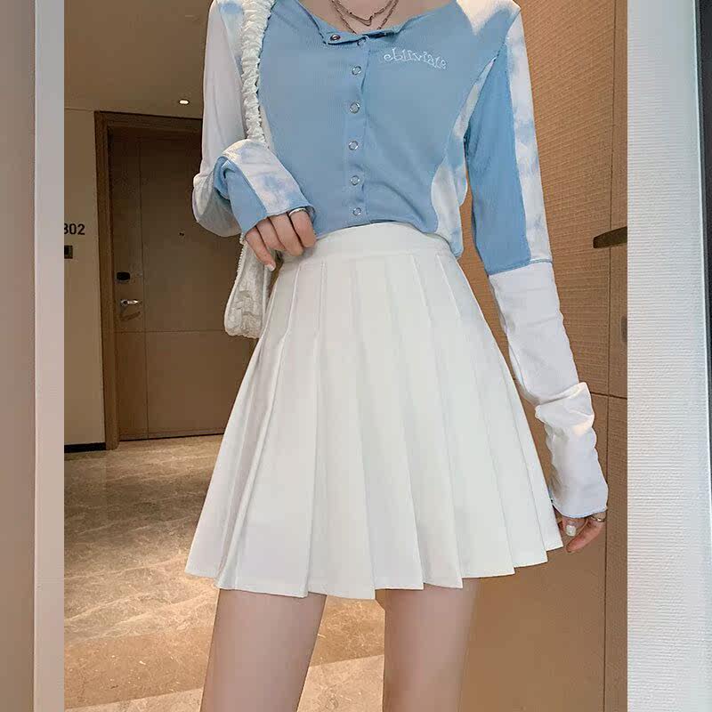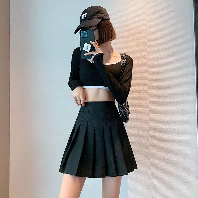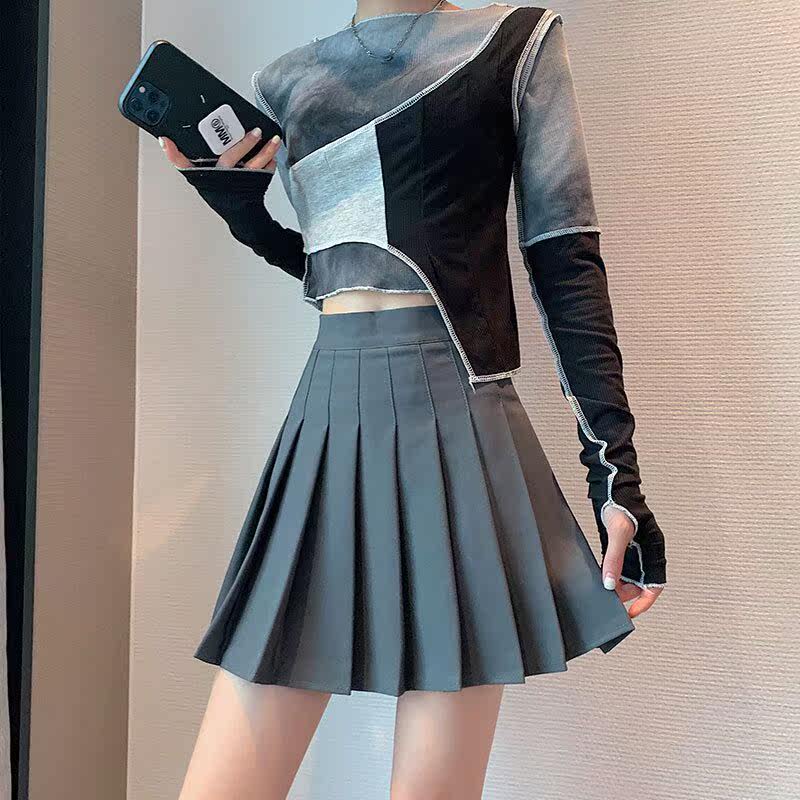 Card with its chromatic plexeum skirt half body short skirt 2022 spring new high waist conspicoy slim foreign pie A character dress pure color student