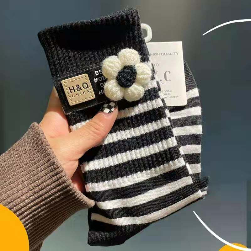 1 Double Pack-(Black & White Strip Flower)