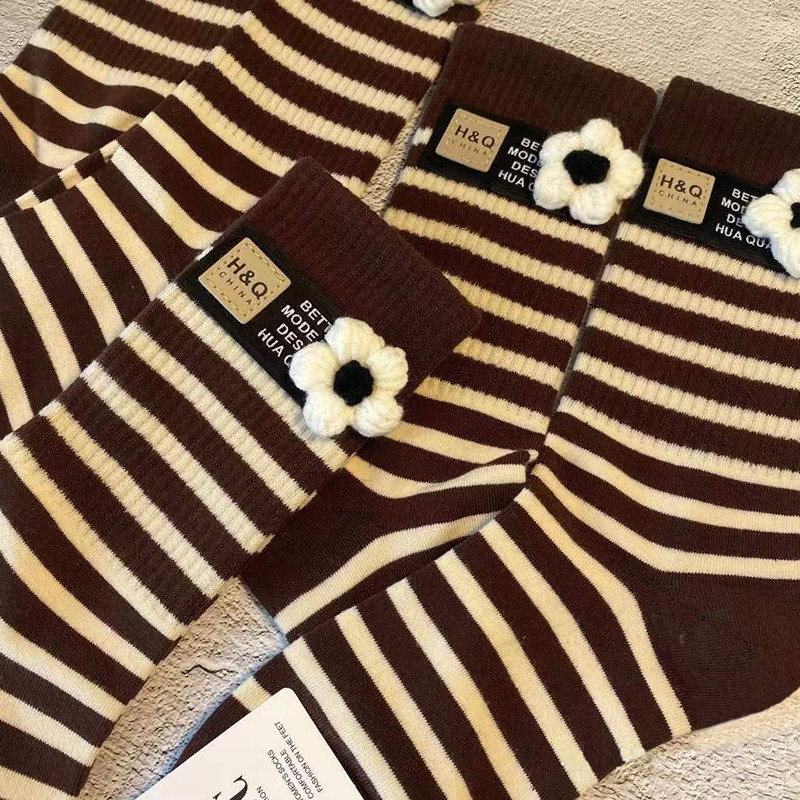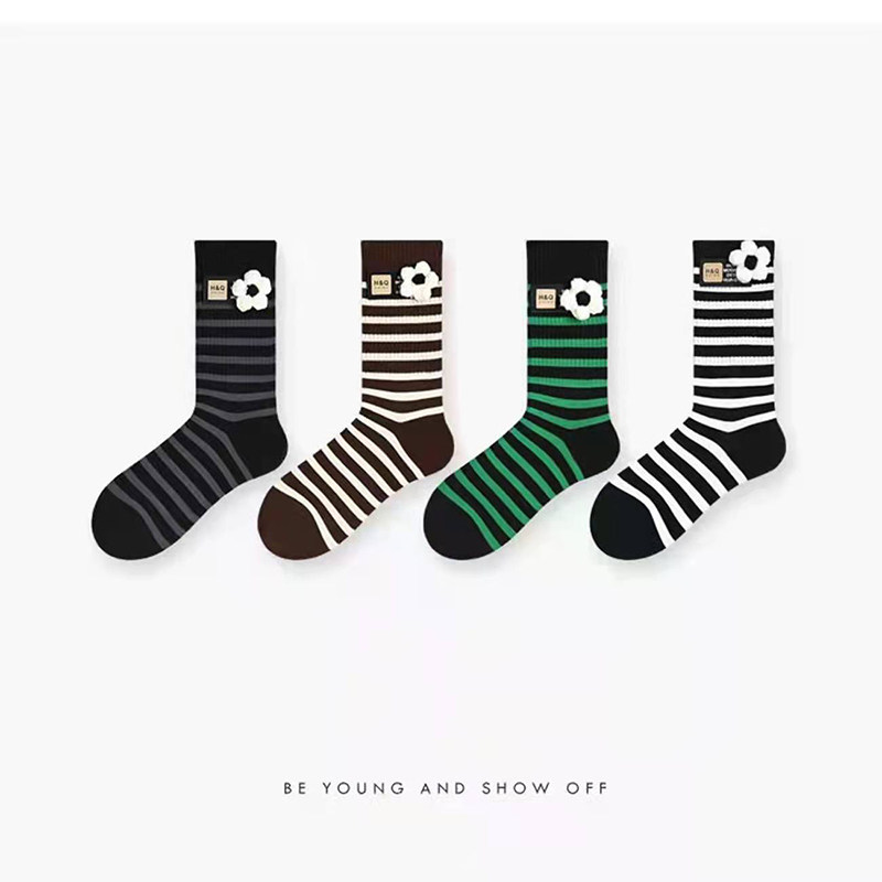 2 Double Packs - (Black and Green Stripe Flowers) + (Coffee White Strip Flowers)