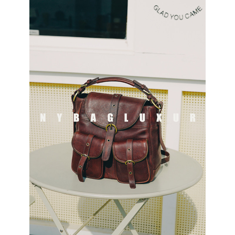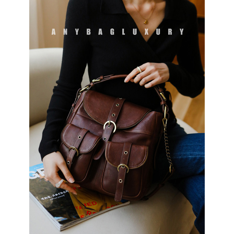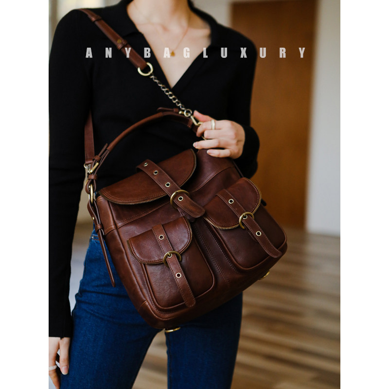 Italy Imports 100 Hitch Native Polished Wax Cow Leather Double Single Shoulder Handbag