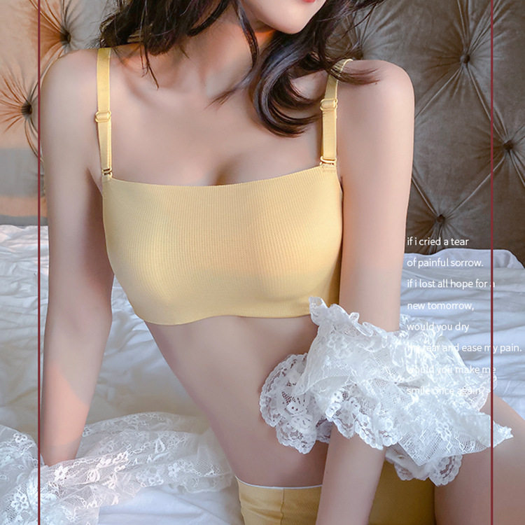 Tube top type anti-glare breathable underwear women's small chest gathered to show large no steel ring thin section seamless girl underwear set