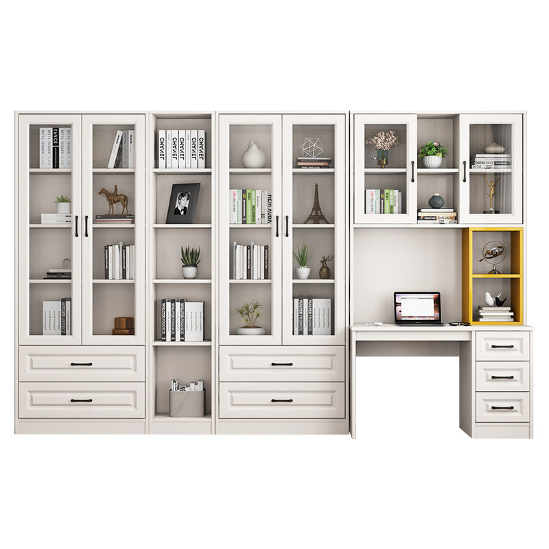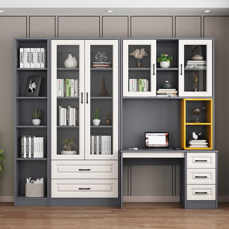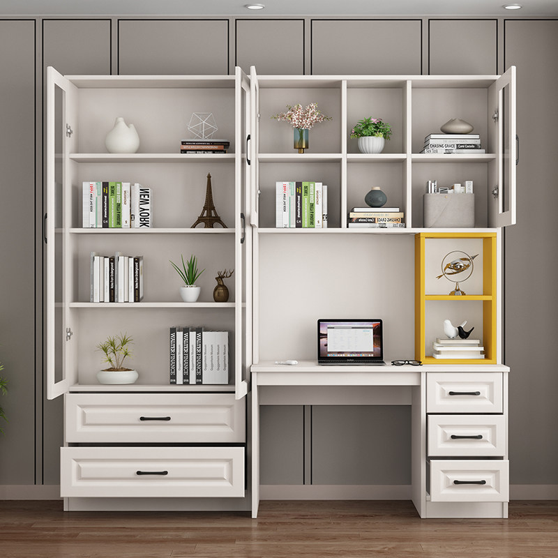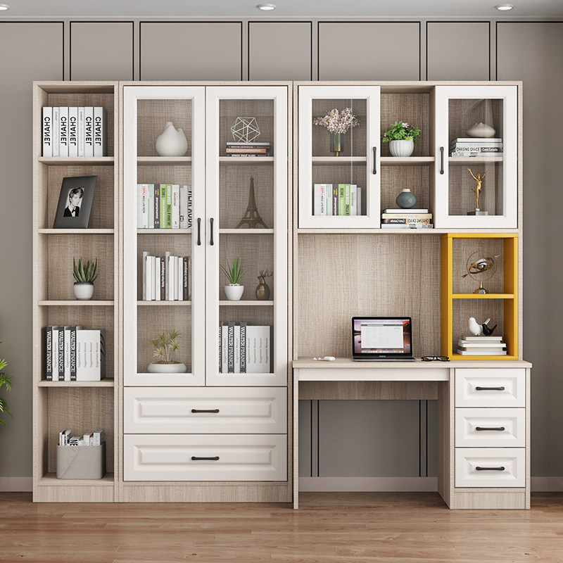 Bookcase computer desk integrated storage cabinet with door solid wood home desk bookshelf combination study study table storage cabinet