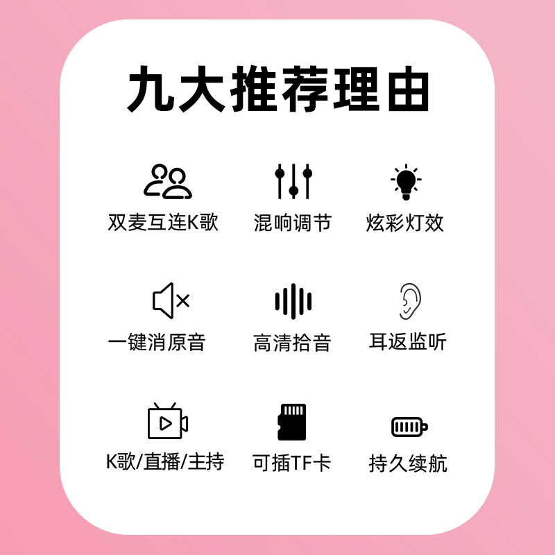 Pink ✅KTV-grade sound quality ✅Built-in sound ✅Bigger volume ✅No noise White ✅KTV-grade sound quality ✅Built-in stereo ✅Bigger volume ✅No noise Yellow ✅KTV-grade sound quality ✅Built-in