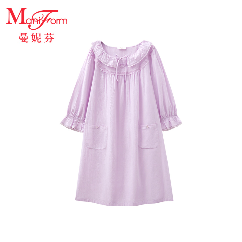Mannefen Lotus Leaf Collar Bubble 70% sleeves Dress Comfort Pure Cotton Home Lady Sleeping Dress Underwear 20310705