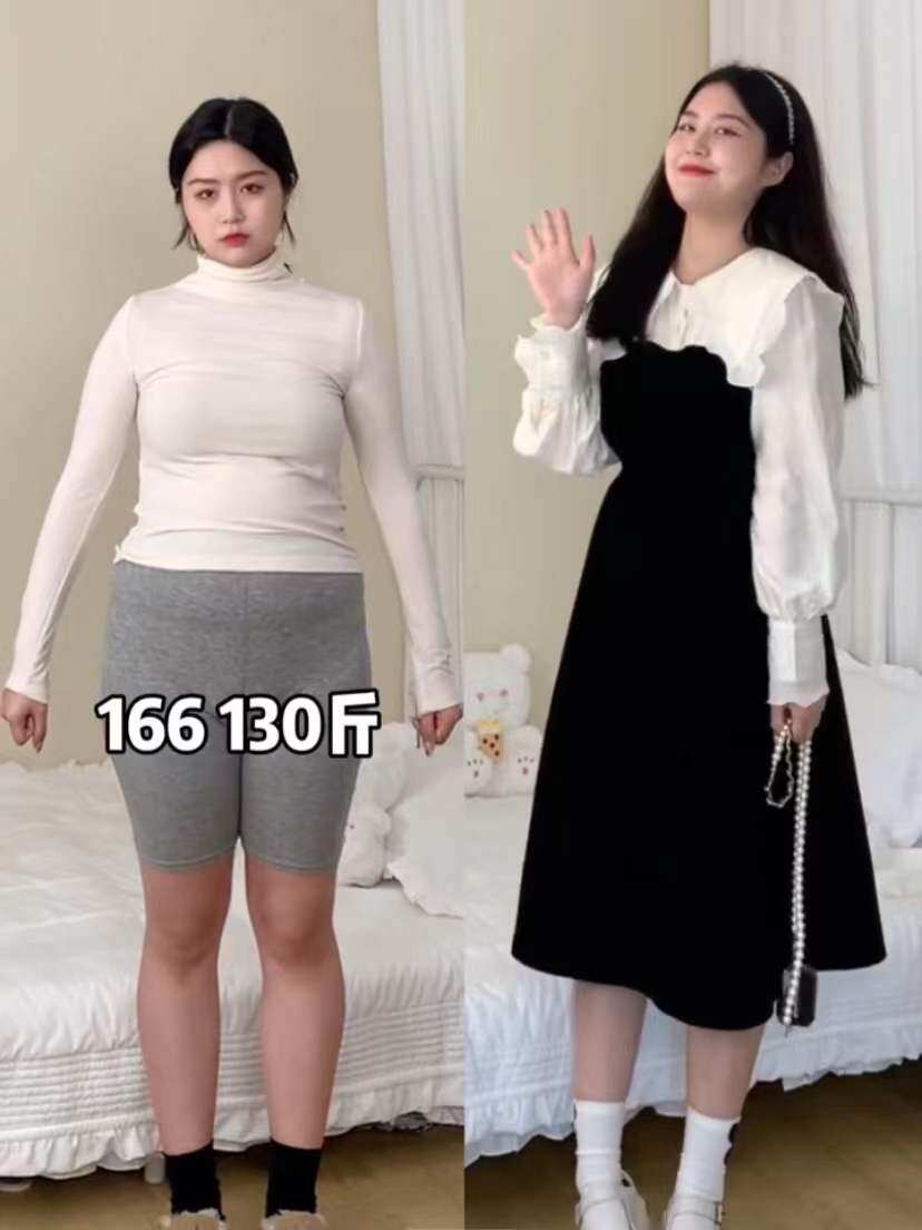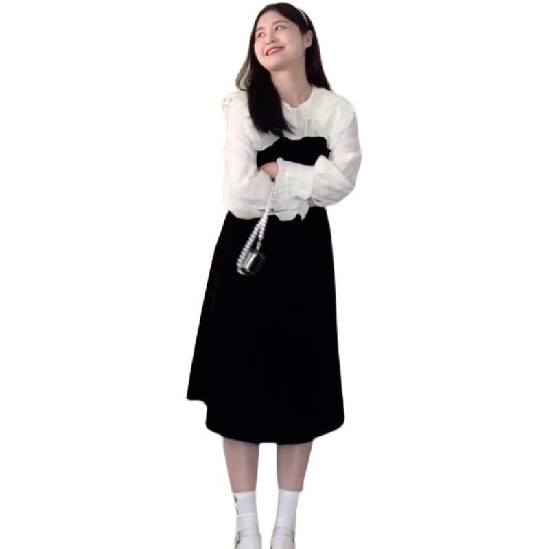 Small Sunflower Micro Fat Mm Large Size Women's Dress Herben Wind Retro Fake Two Foreign Dress Women's Spring Temperament Slim-down Long dress