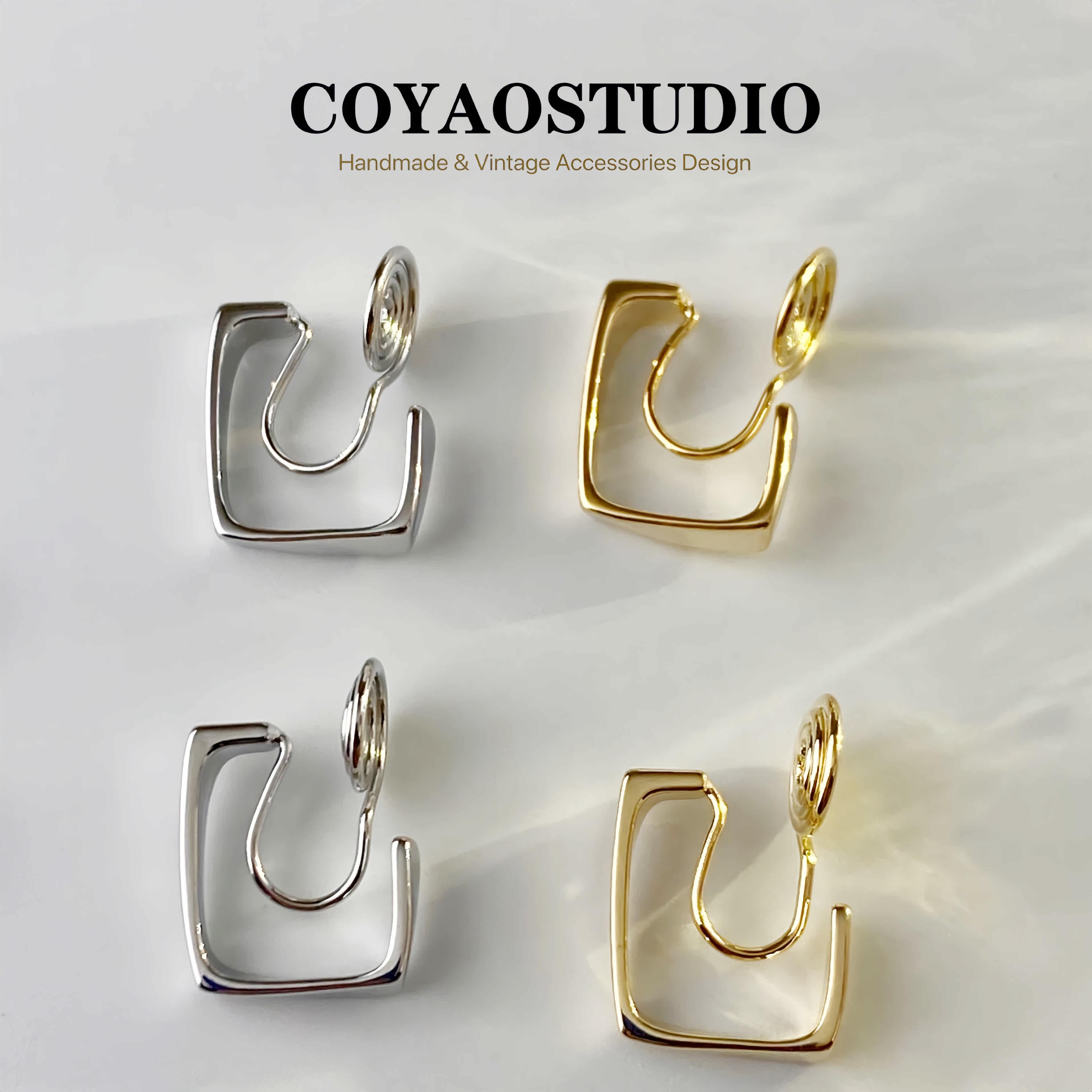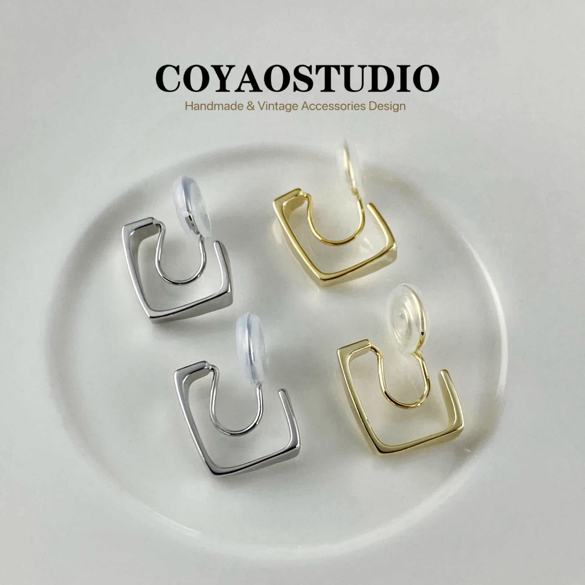 Metal wind design sense geometric square mosquito coil ear clip women without ear holes fashion simple temperament niche earrings