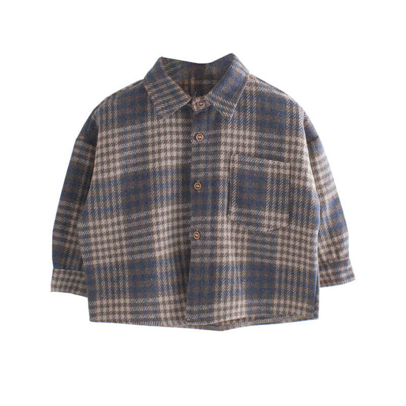 Retro literary fan boys and girls woolen shirts children's Korean version brushed loose tops baby cotton shirts spring