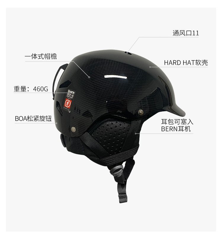 bern ski helmet carbon fiber helmet single-board double-board protection adult men and women with brim