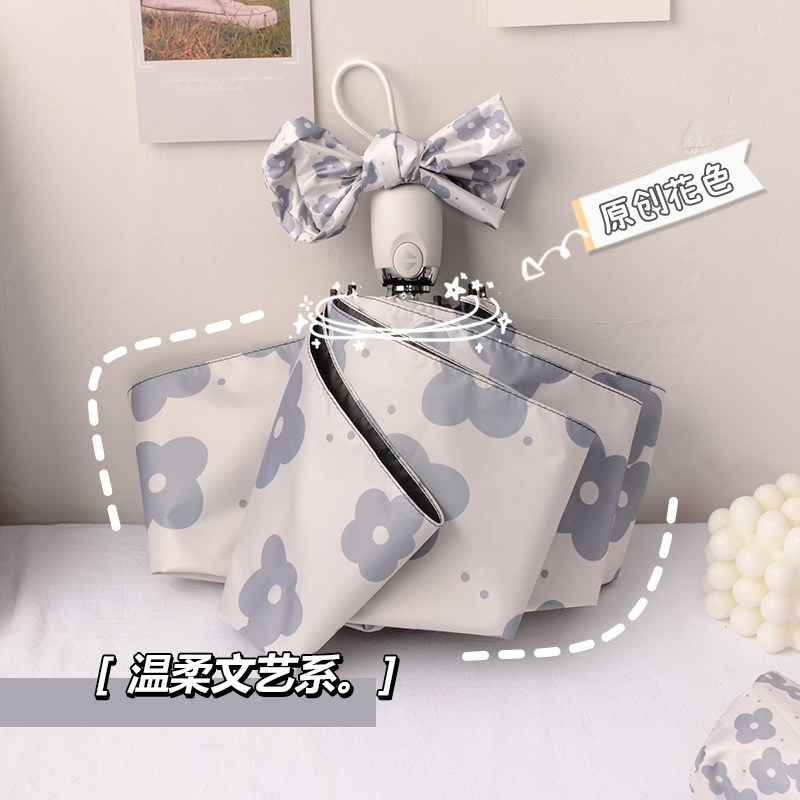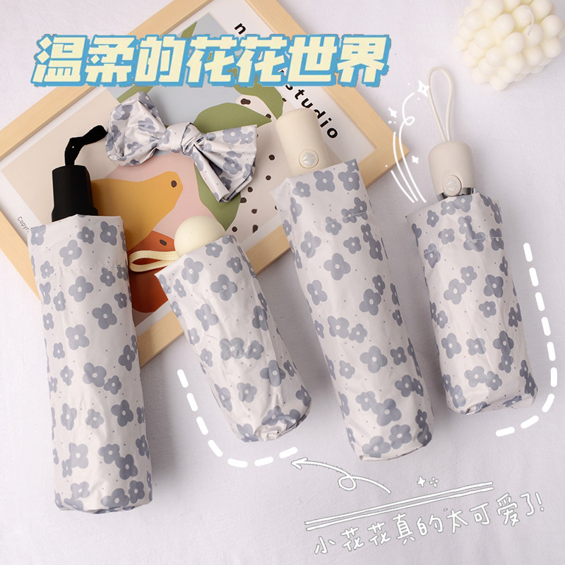 Soft glutinous small flower full automatic umbrella female sunscreen anti-UV folding sunscreen umbrella sunny and rainy with black rubber umbrella