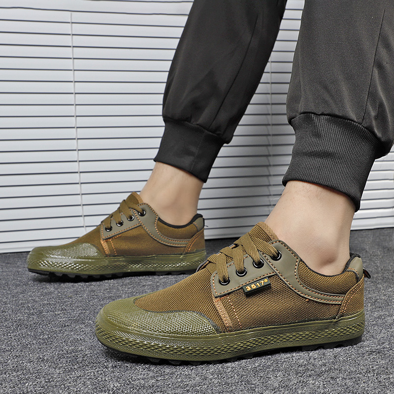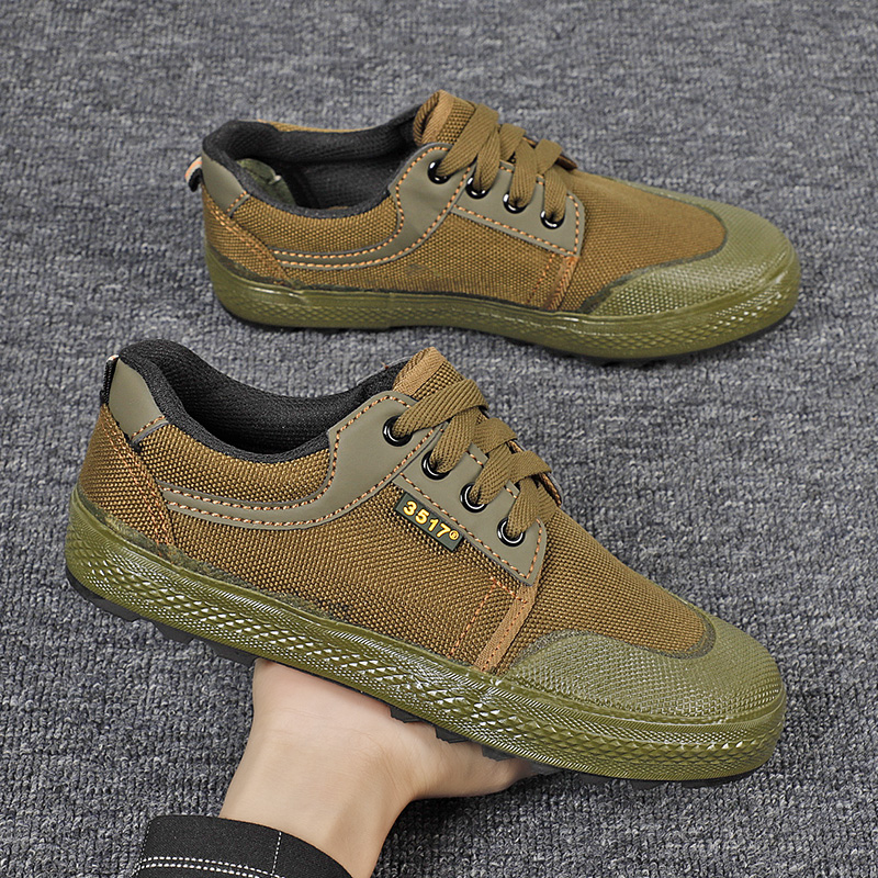 Field men's liberation shoes low-top wear-resistant canvas breathable labor insurance shoes for migrant workers construction site yellow sneakers for training military training rubber shoes