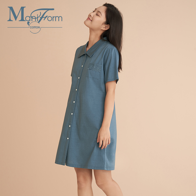 Maniform Cotton Living Pajamas 100% Cotton Mercerized Cotton Lapel Side Pocket Nightdress Homewear