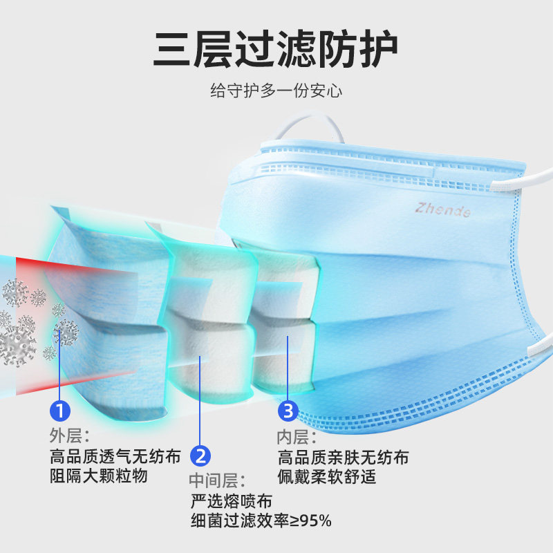 (Live Exclusive) Zhende Medical Medical Surgery Mask Disposable Triple Layer Protective Adult Mask 260 Only