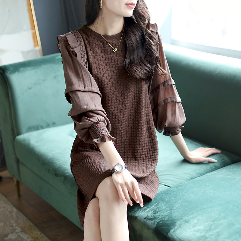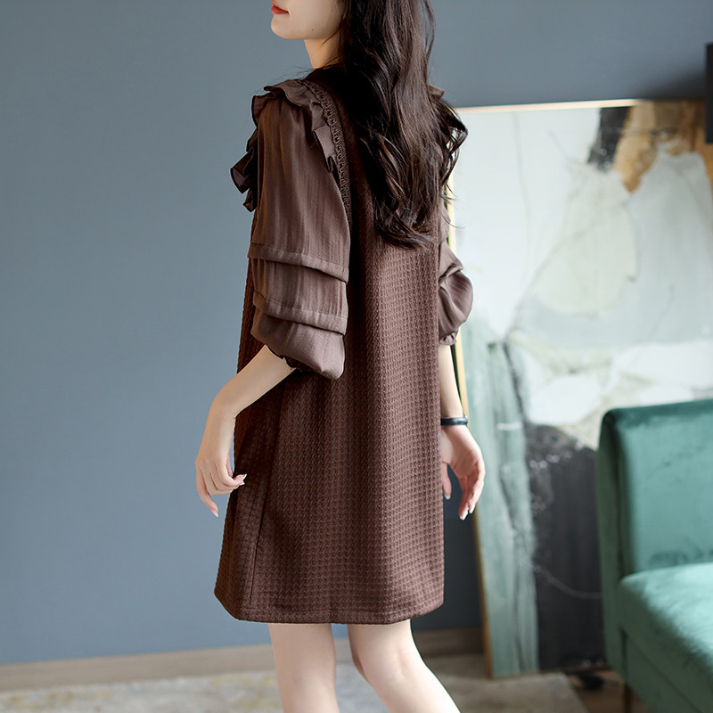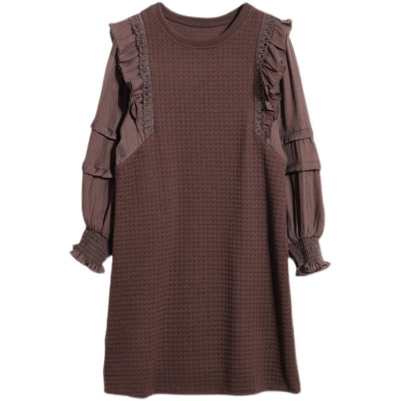 CATHYLADI FASHION LACE Splicing Round Collar Lotus Leaf lace Skirt Commute Retro Kilobirge gig with long style dress-Taobao