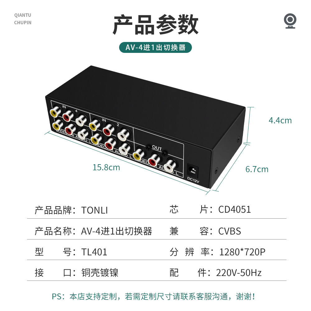 Co-Lie audio-video switcher Four-in-out 4-in 1-out 4-way with infrared remote control automatic switching of high quality