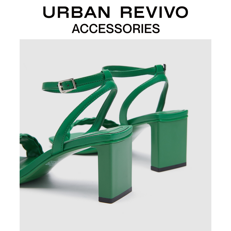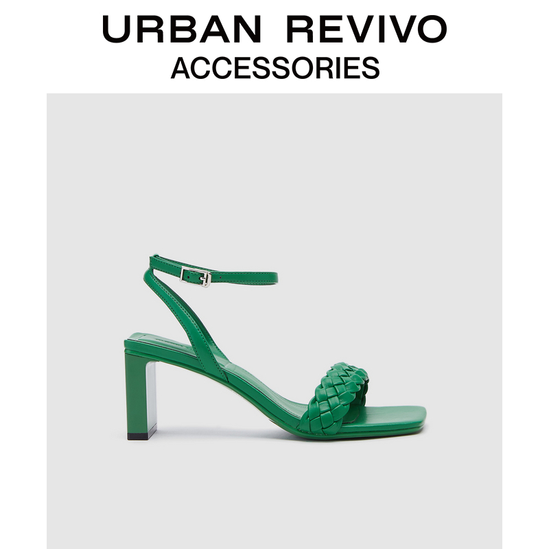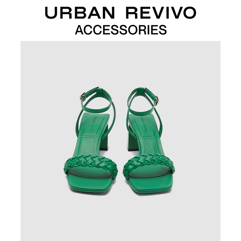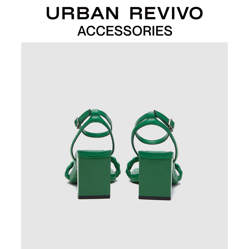 URBAN REVIVO2022 Spring New Lady Accessories Woven Coarse Heel Sandal AW12BS3N2002