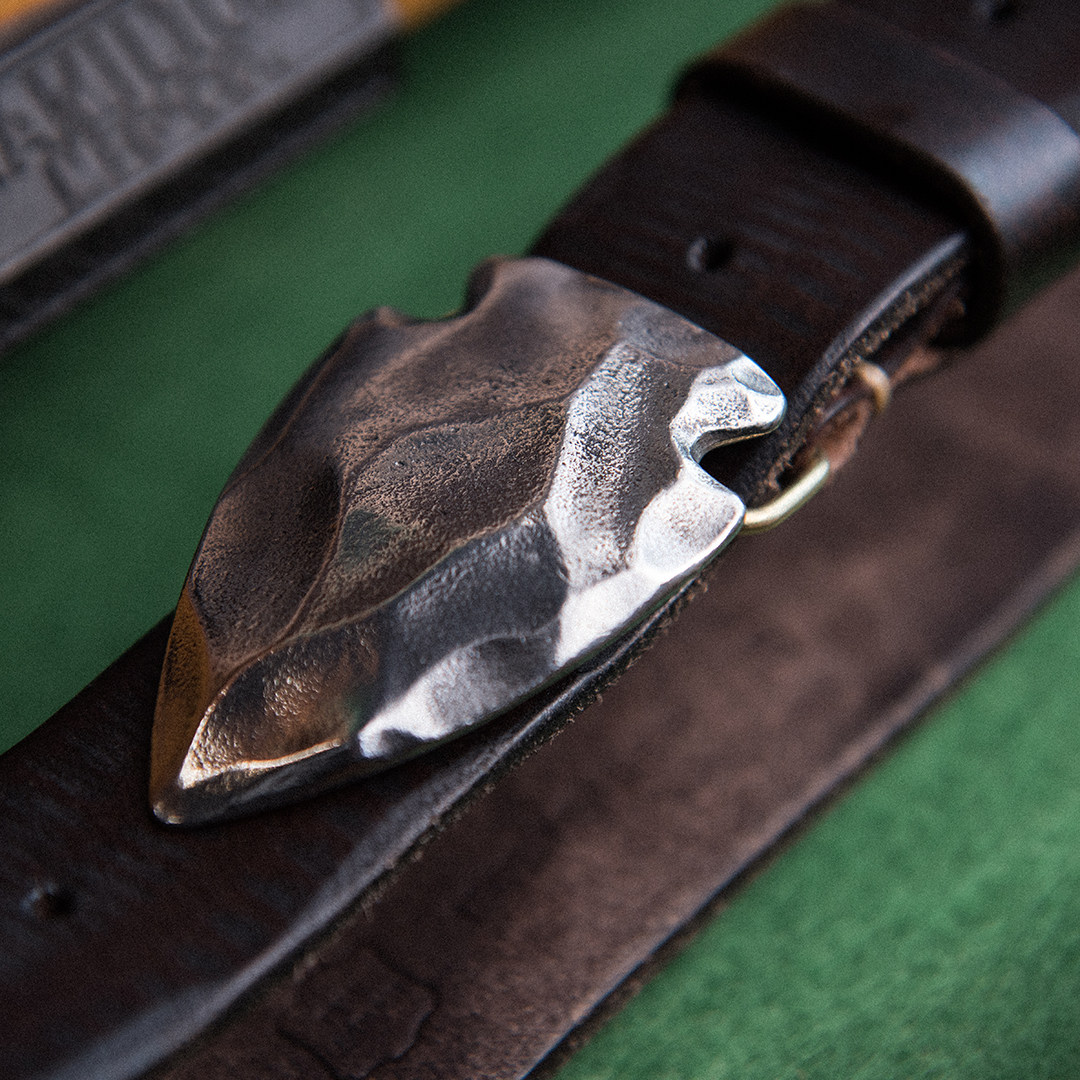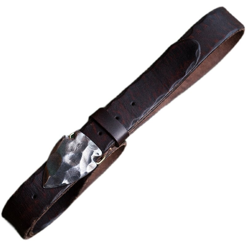 Shanyan heavy 50 thick cowhide American retro western hardcore textured stainless steel stone spear buckle head