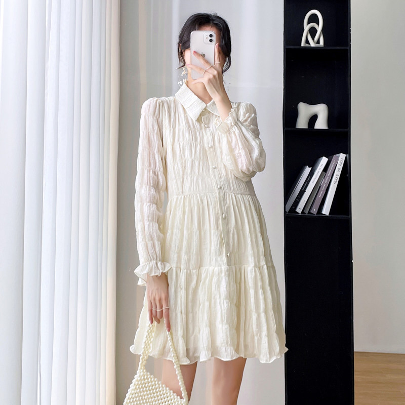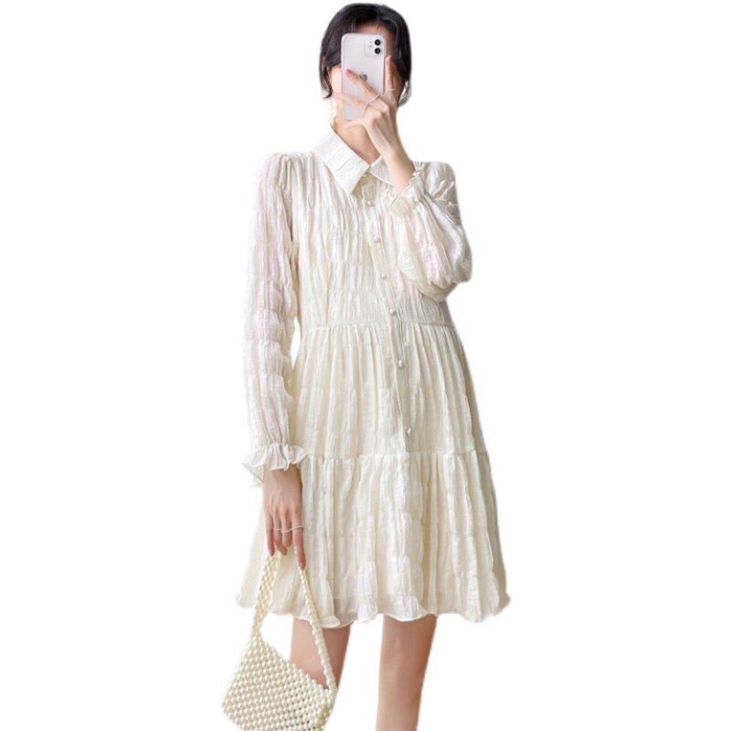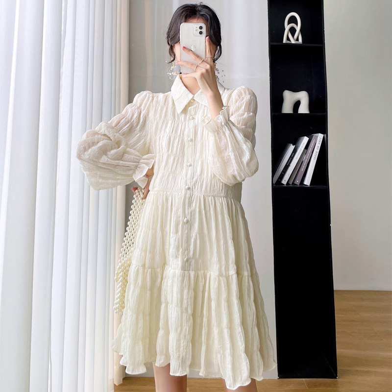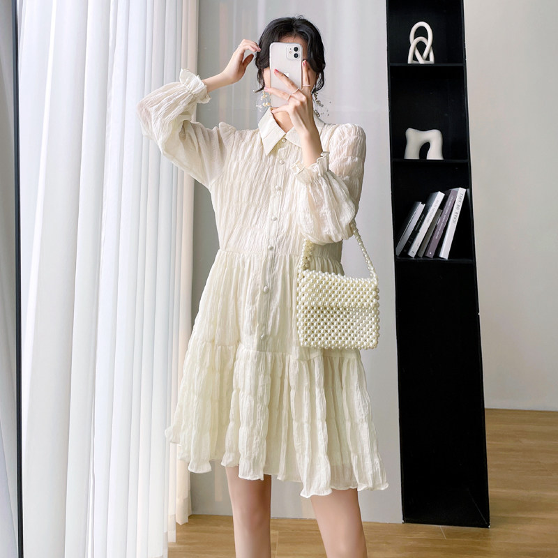 Online Red Pregnancy Woman Dress Spring Dress New Korean Version Long Sleeve Polo Collar Foreign Dress Fashion style Spicy Moms button Dresses