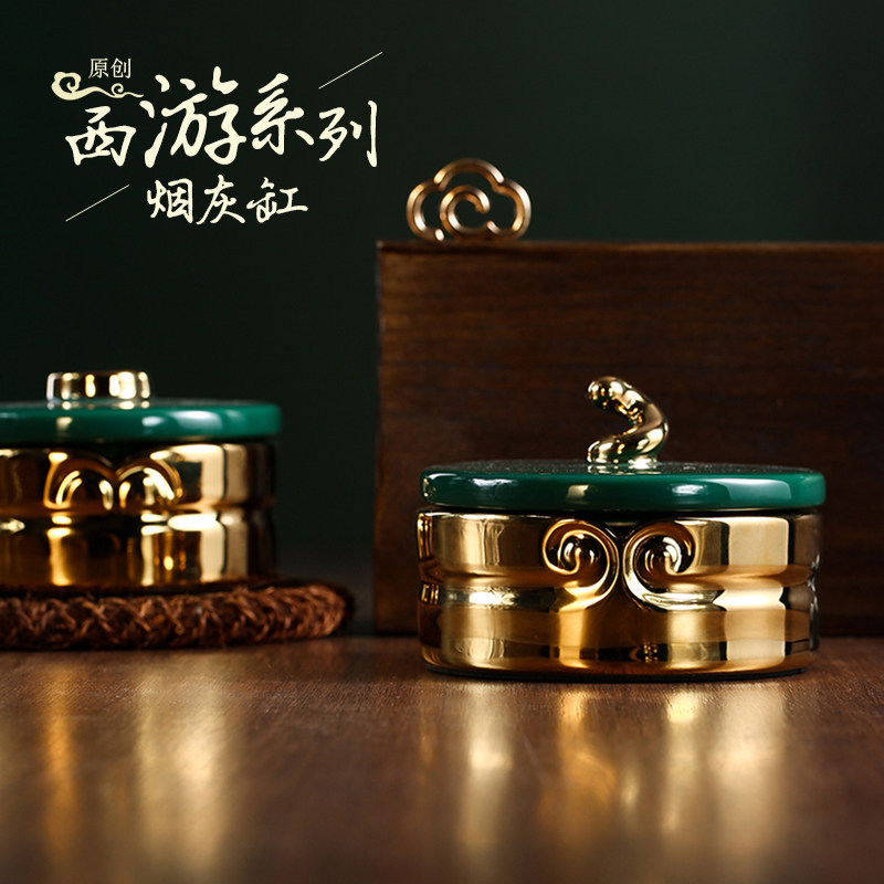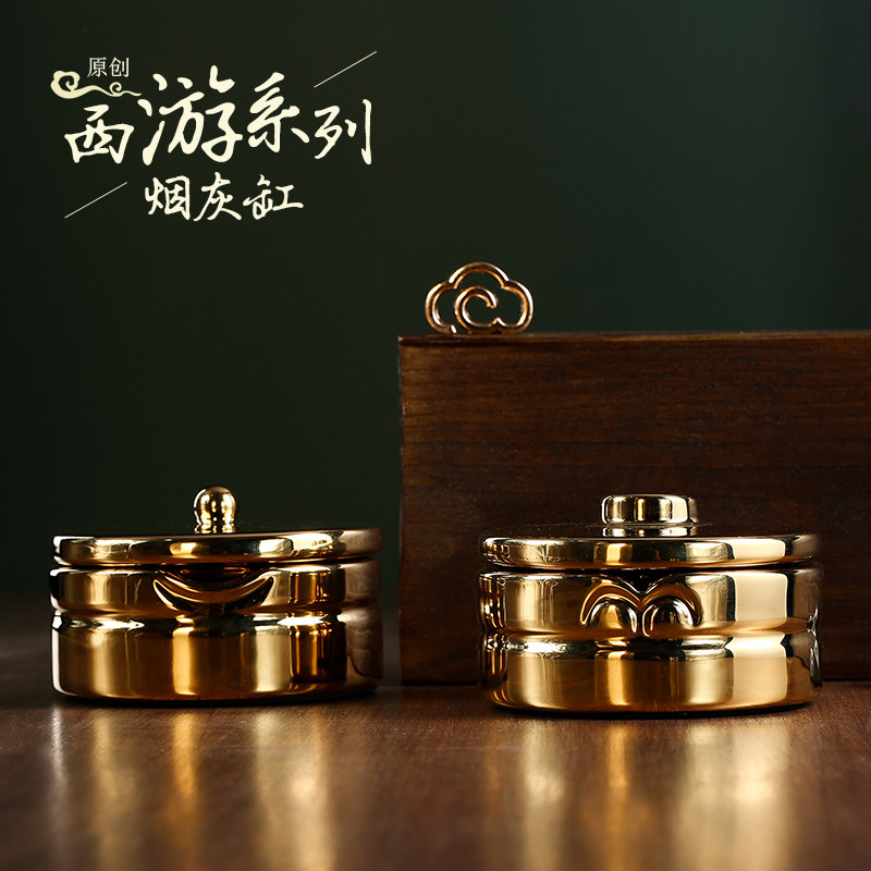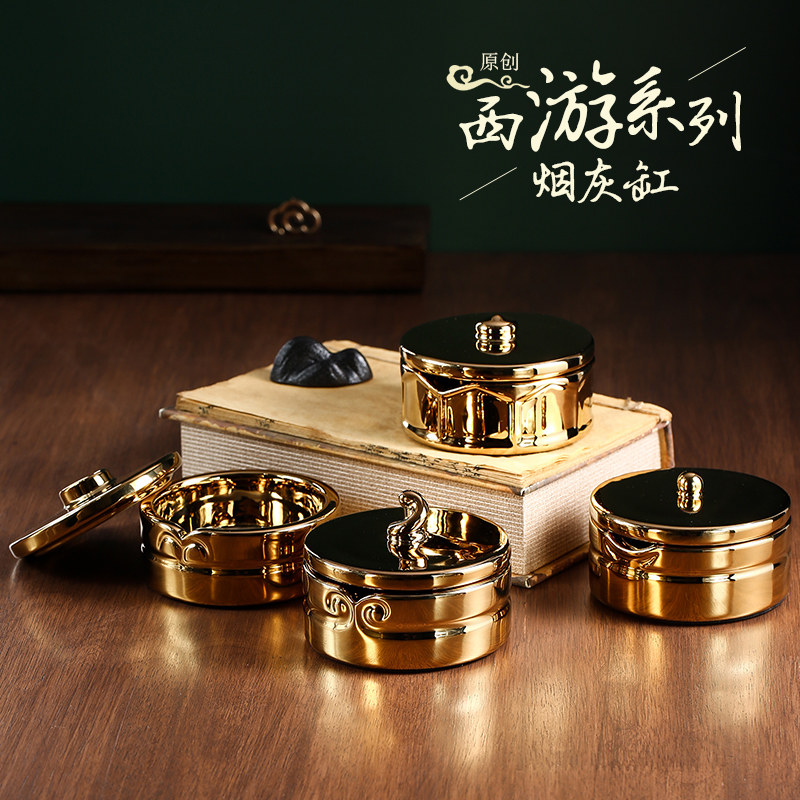 Golden Iron Art Smoked (12cm Small Number) Golden Iron Art Ashtray (14cm Large Number) Pig Octab Smoking Ash Trays-Golden Sand Co-smoking Ash Trays-Golden Tang Three Tibetan Tobacco Ashtray-Matt