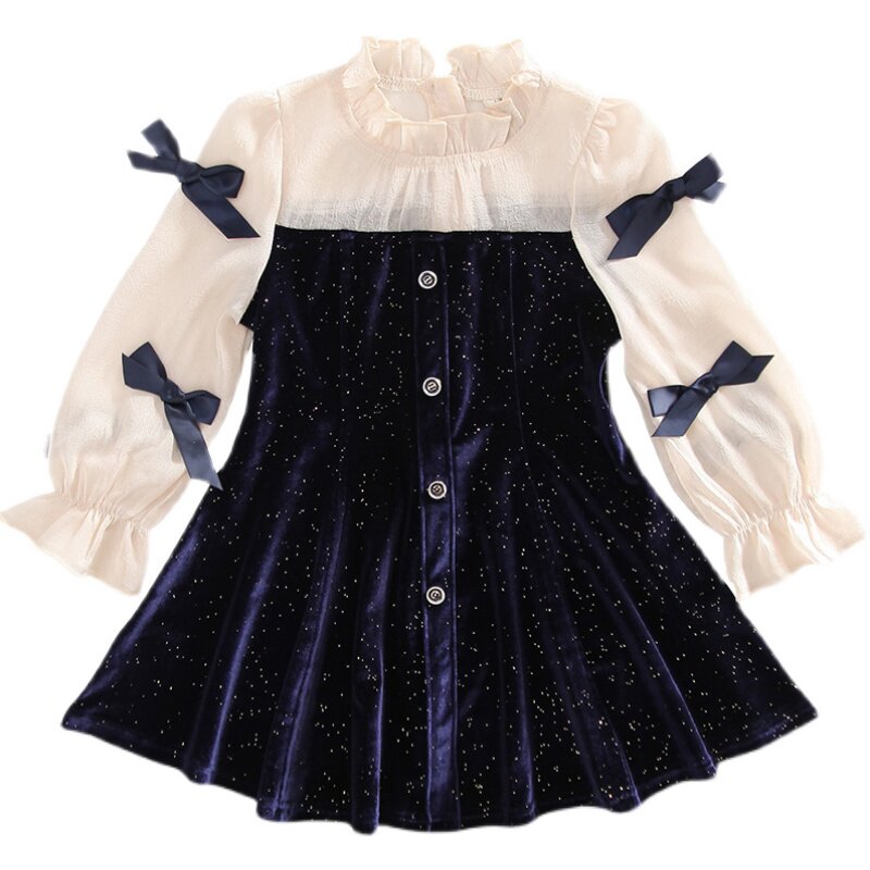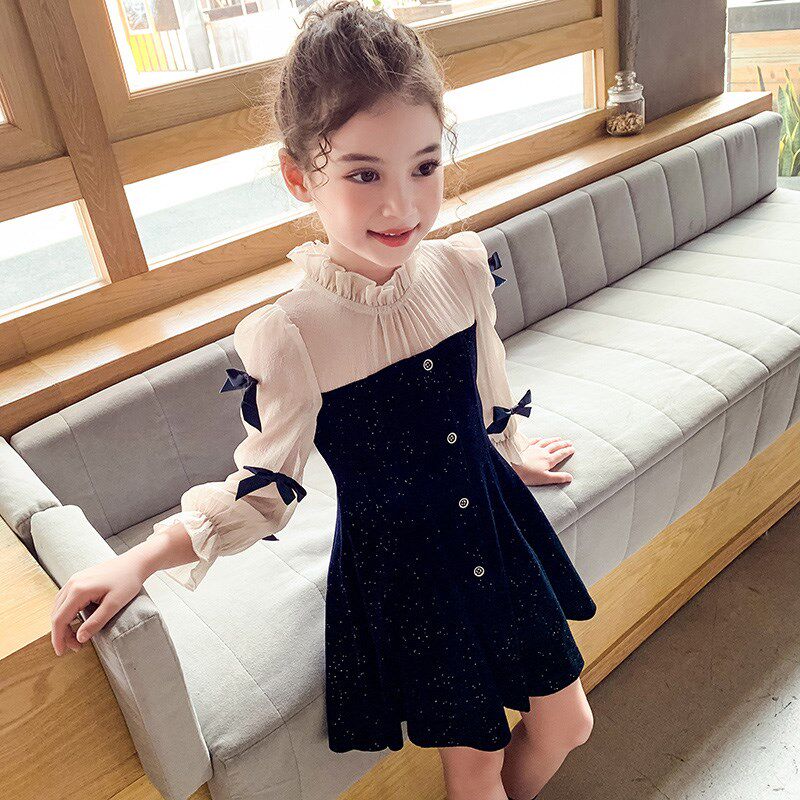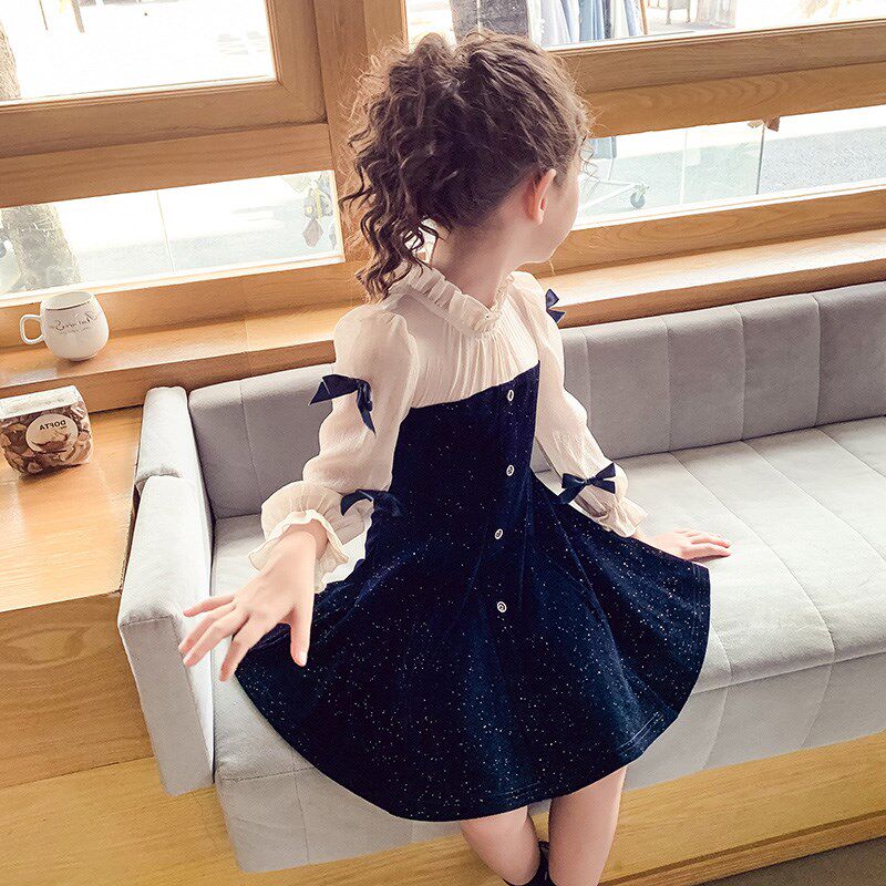 Boomer Girl Foreign Dress Spring Dress 2022 New Foreign Pie Girl Fared High-end Velvet Dress Child Princess Dress