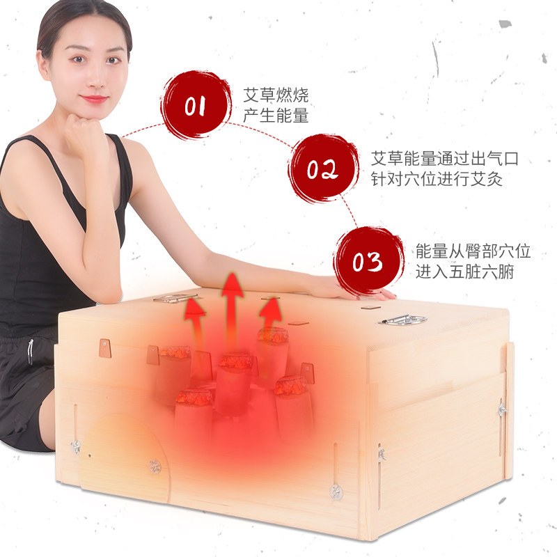 Wooden moxibustion box whole body multi-part large moxibustion box abdomen moxibustion box home portable moxibustion fumigation instrument