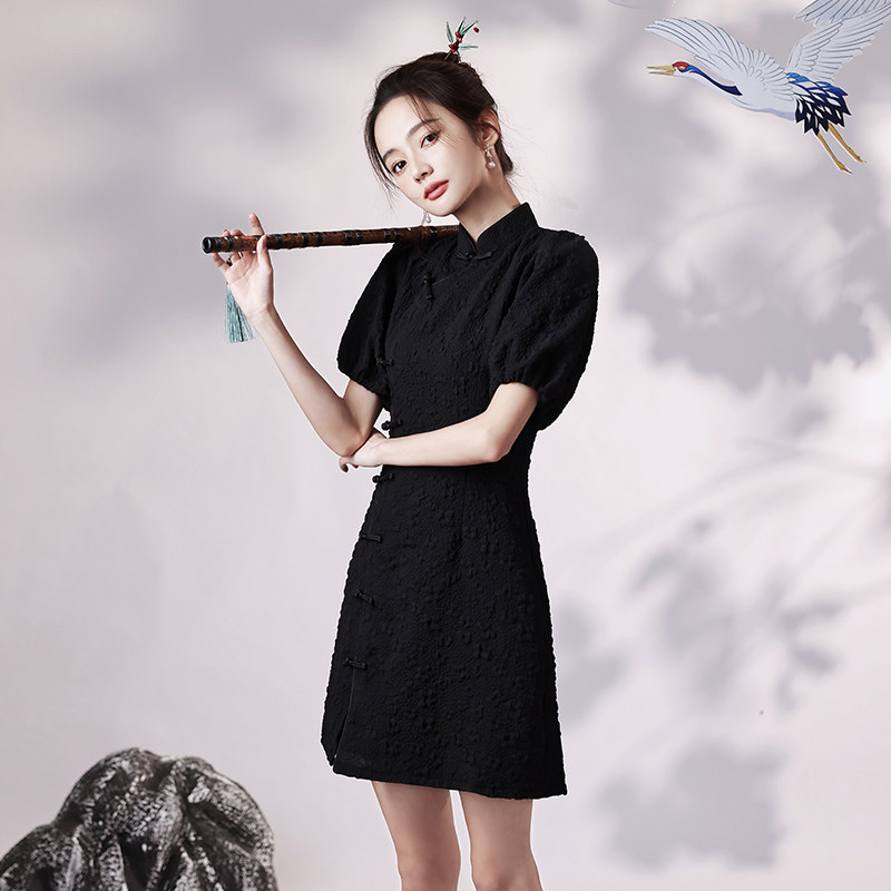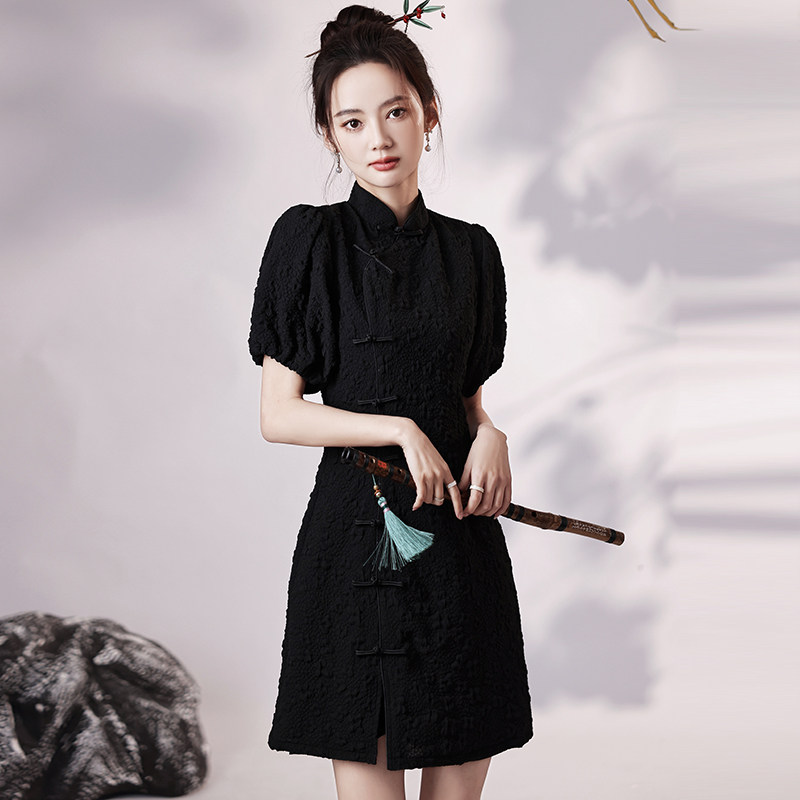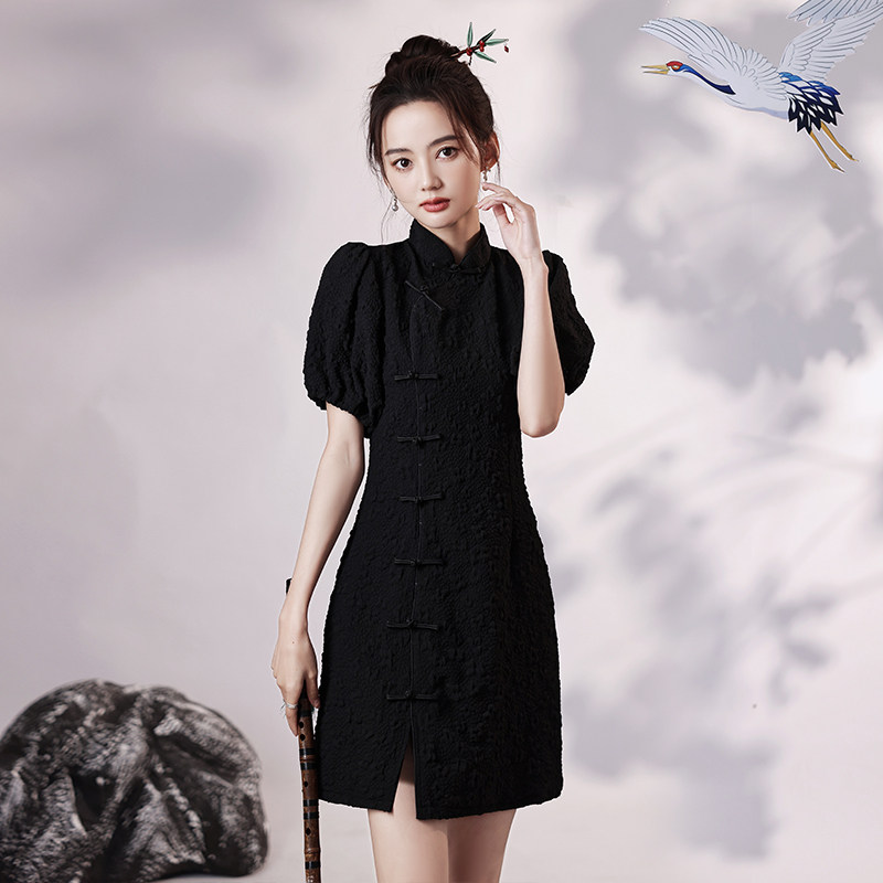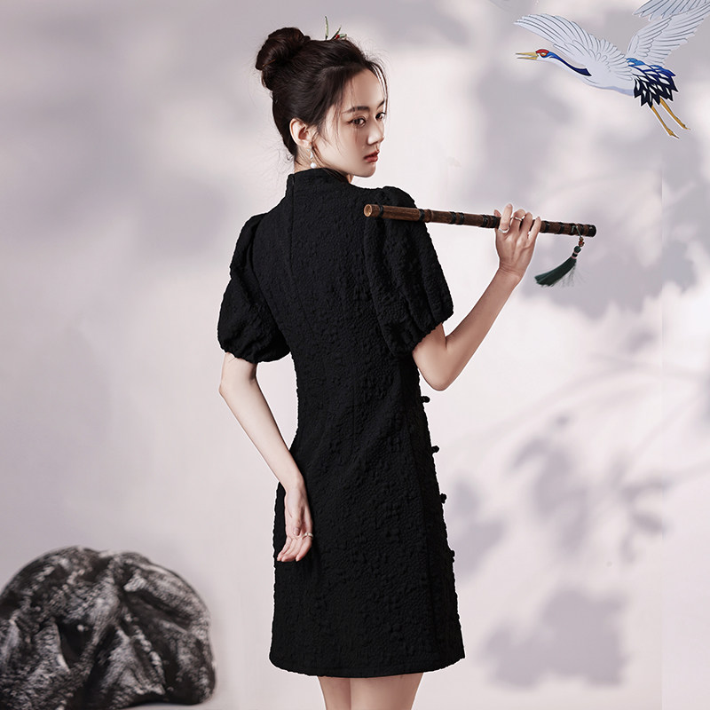The French flag gown 2022 The new black teenage girl improves the everyday young Small Crowd Bubble Sleeves Short dress
