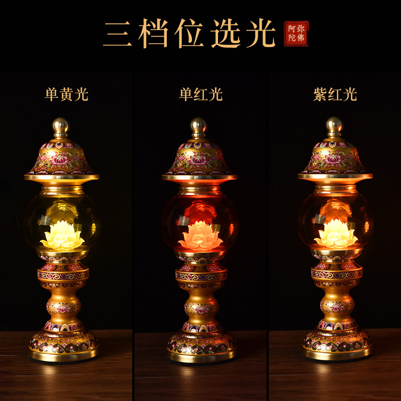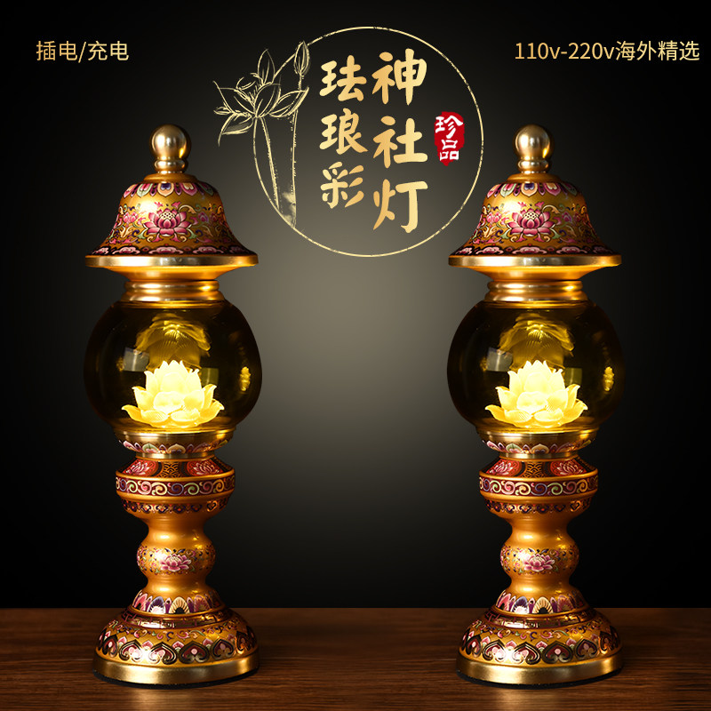 2022 new enamel color craft led lotus lamp Buddha front lamp long bright lamp charging and inserting dual-purpose lotus lamp