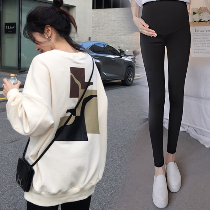 Pregnant women spring suit fashion 2022 net red coat out loose long sleeve thick cotton T two-piece spring and autumn