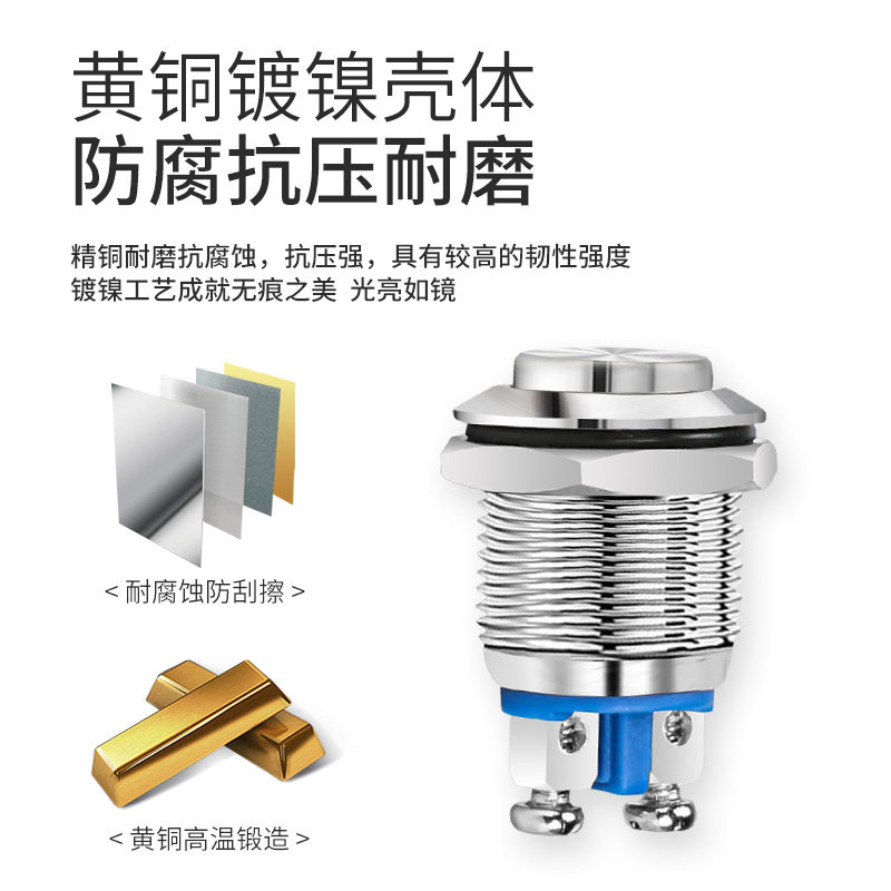 12mm metal button switch self-reset high head flat head start small power switch screw foot waterproof point move