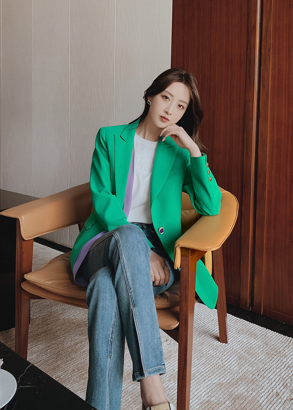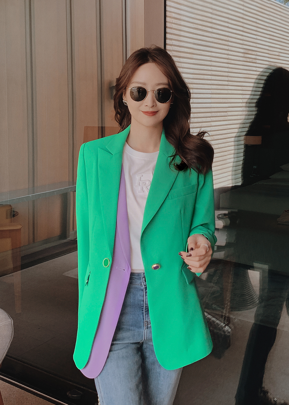 Lieer high-definition LRKS (tonal suit) twill contrast color fake two-piece butterfly printed lining suit L349