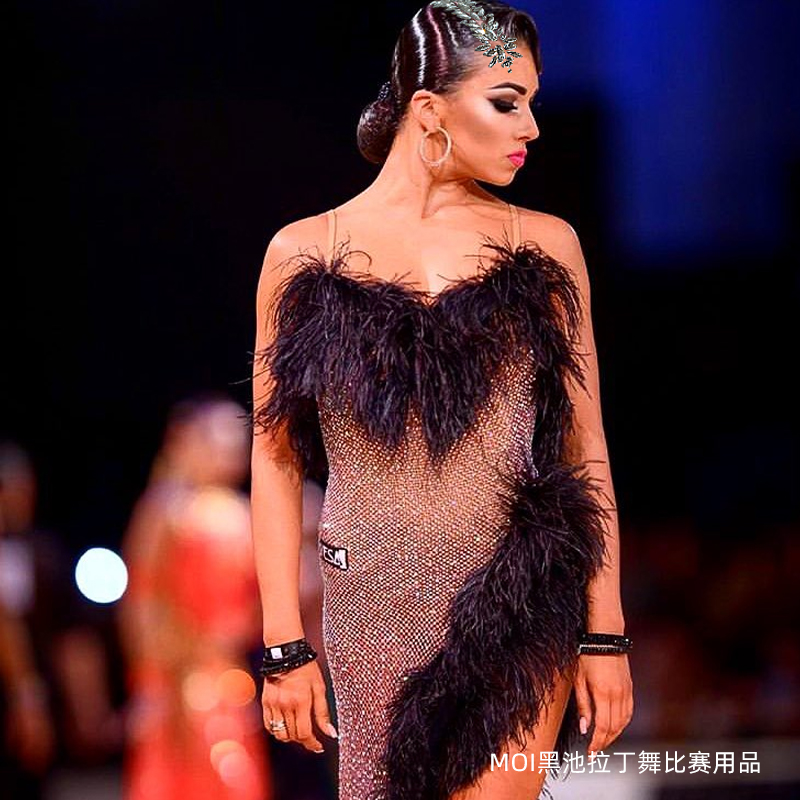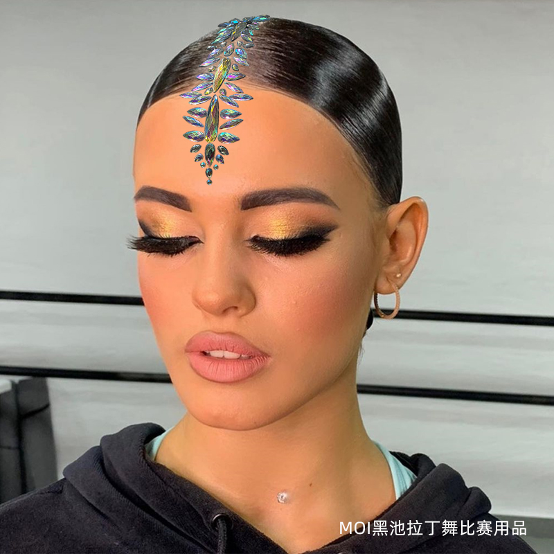 Morden Dance Competition Headwear Self-Glued Shiny Collared Latin dance Hair Accessories female National Label Performance Accessories Black Pool Styling